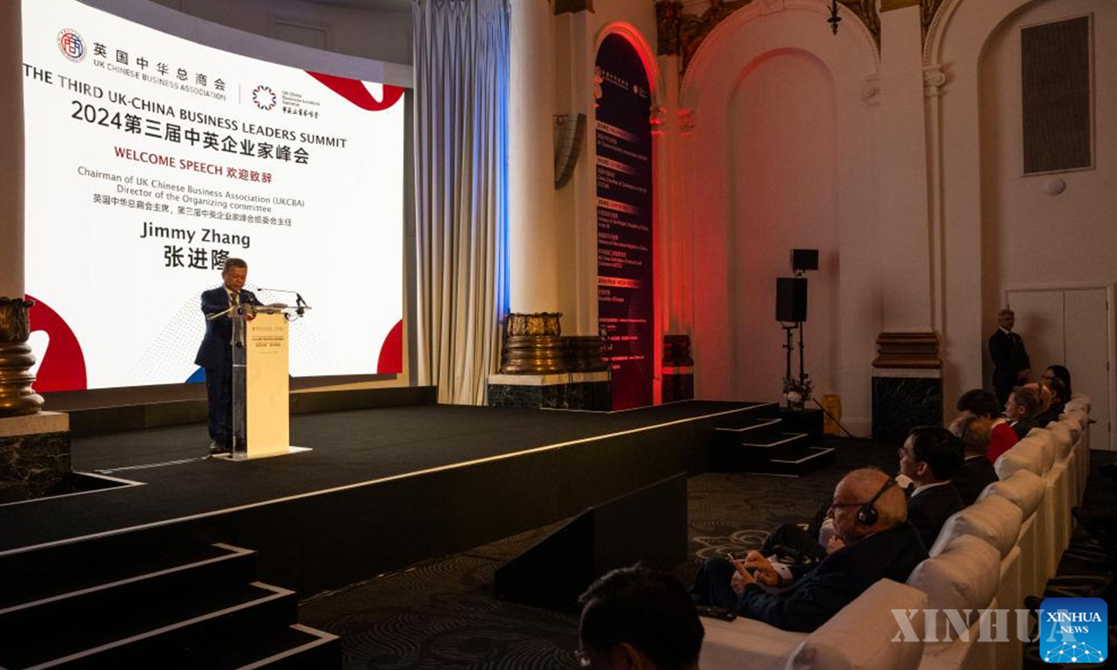 This Photo shows a view of the 3rd United Kingdom (UK)-China Business Leaders Summit in London, Britain, on May 28, 2024. (Photo by Stephen Chung/Xinhua)