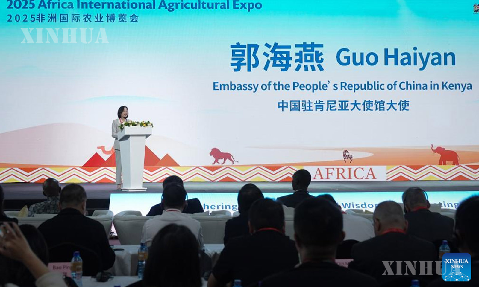 Guo Haiyan, Chinese Ambassador to Kenya, delivers a speech at the opening ceremony of the 2025 Africa International Agricultural Expo in Nairobi, Kenya on Oct. 28, 2025. (Xinhua/Han Xu)
