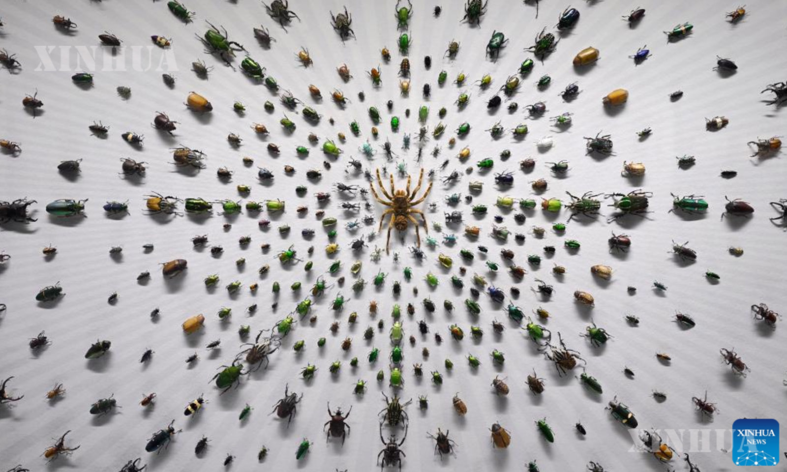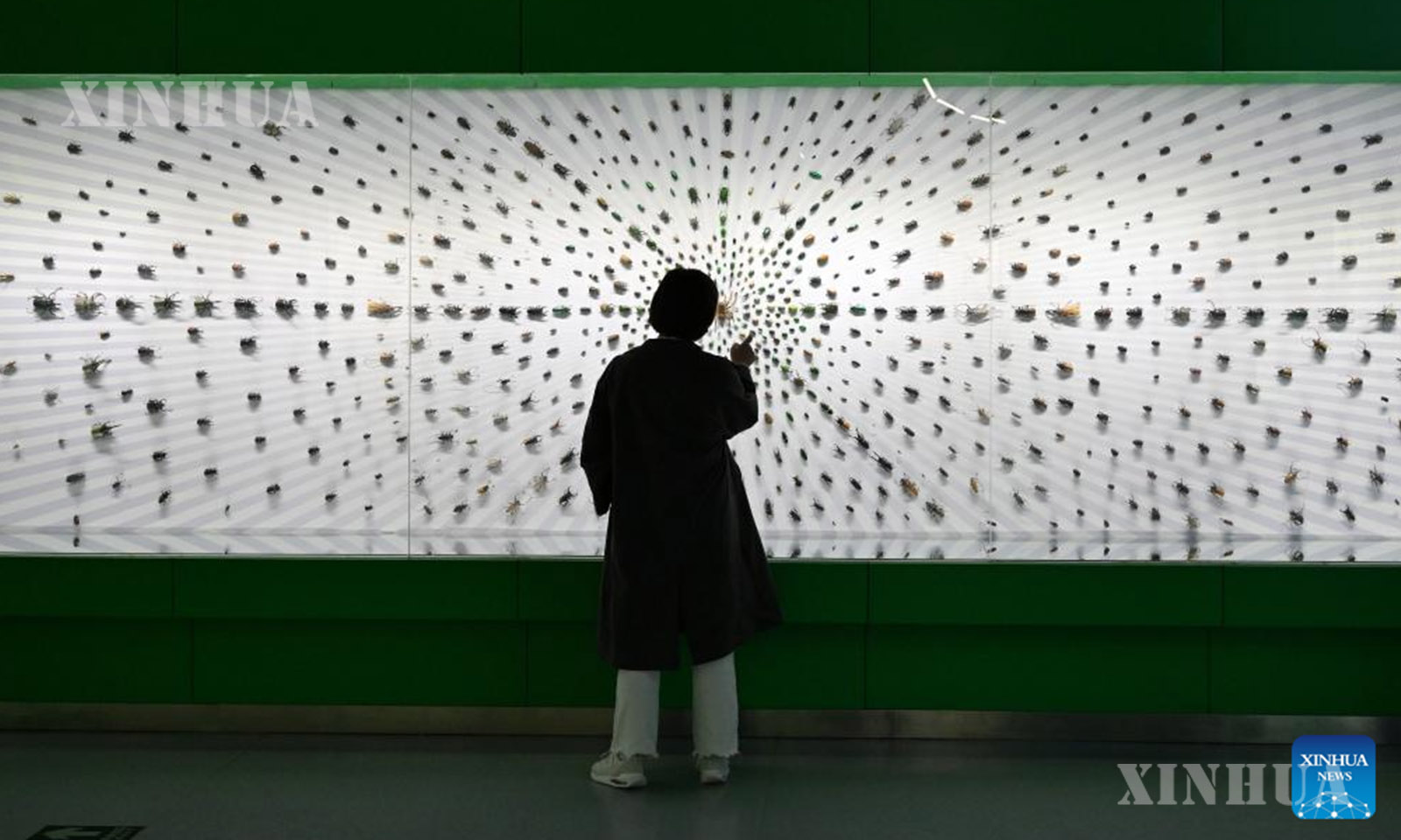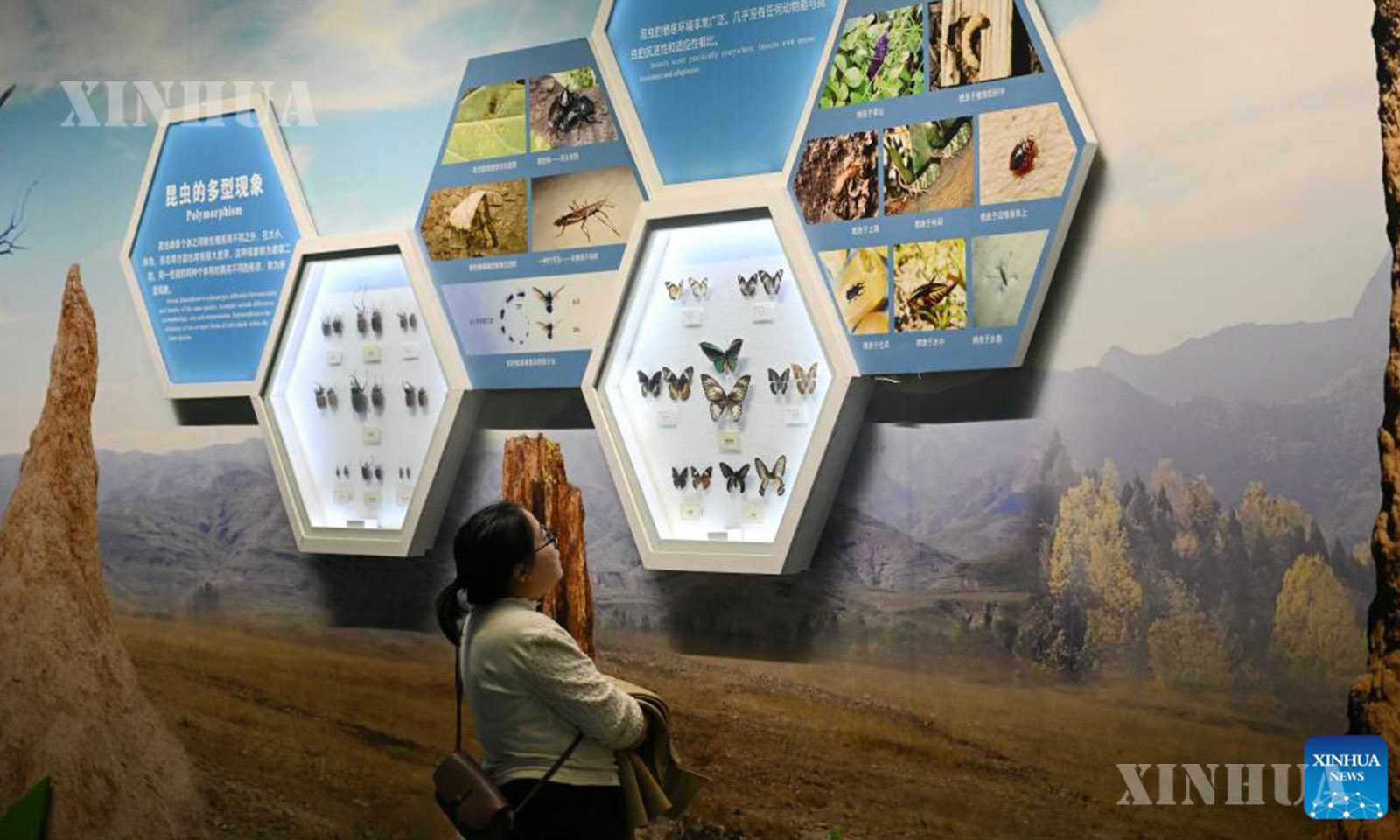 တရုတ်နိုင်ငံ အနောက်မြောက်ပိုင်း ဆန်ရှီးပြည်နယ် ယန်လျင် ခရိုင်ရှိ Northwest A&F တက္ကသိုလ် ပြပွဲပန်းခြံ၌ ပိုးမွှားသတ္တဝါပြတိုက်ရှိ ပိုးမွှားနမူနာများကို ၂၀၂၅ ခုနှစ် အောက်တိုဘာ ၂၆ ရက်က တွေ့ရစဉ် (ဆင်ဟွာ)