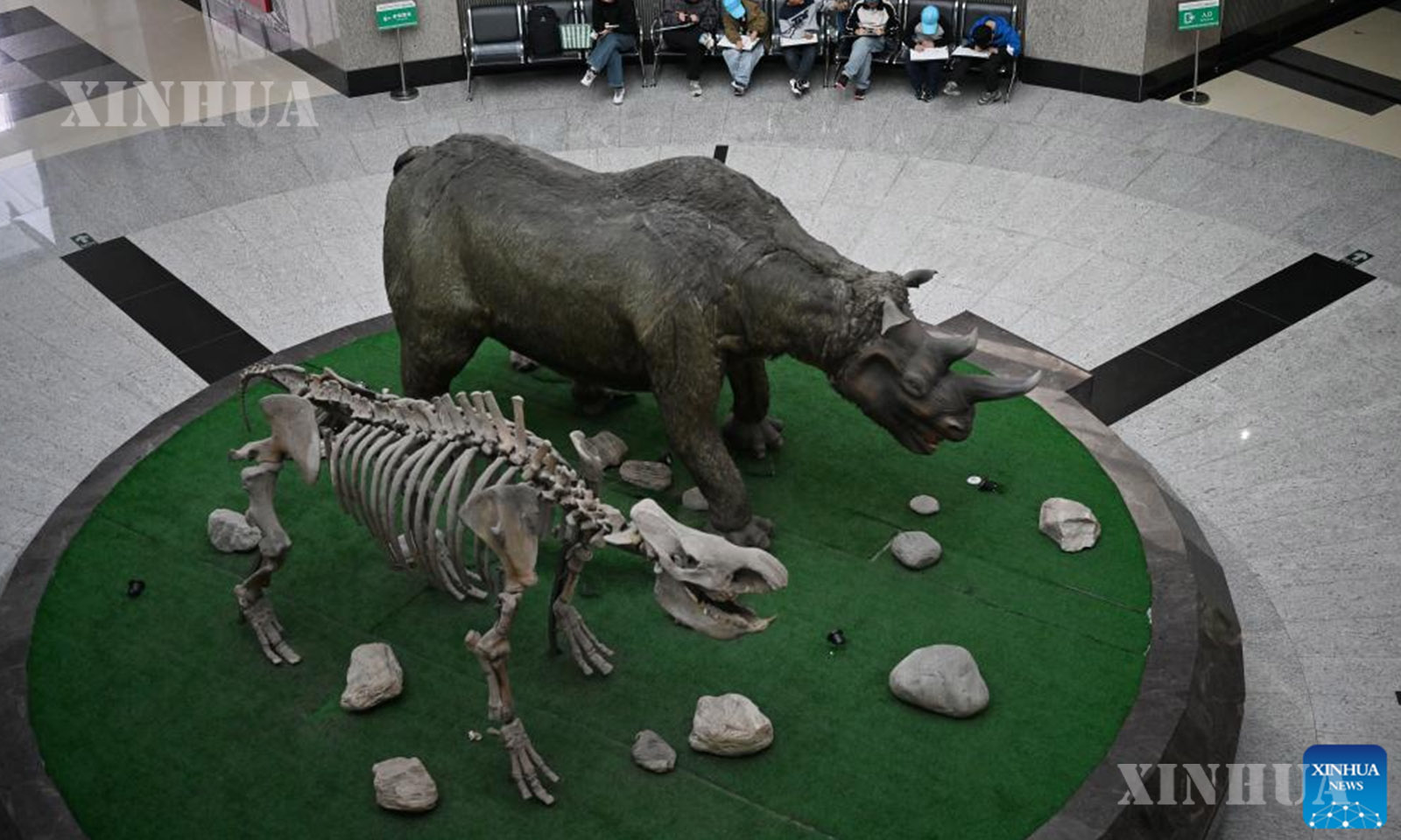 Students sketch a woolly rhinoceros specimen at the Animal Museum of the Northwest A&F University Exposition Park in Yangling, northwest China’s Shaanxi Province, Oct. 26, 2025. (Xinhua/Li Yibo)