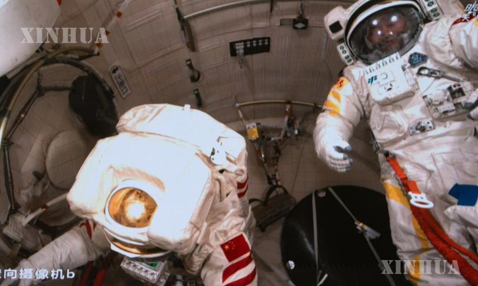 တရုတ်နိုင်ငံ၏ ထျန်းကုန်းအာကာသစခန်းအတွင်း၌ အလုပ်လုပ်နေကြသော ရှန်ကျိုး-၂၀ အာကာသယာဉ်မှူးများဖြစ်ကြသော ဝမ်ကျယ် (ဝဲ) နှင့် ချန်ကျုံးရွှေ့တို့အား ပေကျင်း အာကာသထိန်းချုပ်ရေးစင်တာတွင် ၂၀၂၅ ခုနှစ် စက်တင်ဘာ ၂၅ ရက်က ဖန်သားပြင်ဓာတ်ပုံရိုက်ကူးထားပုံကို တွေ့ရစဉ် (ဆင်ဟွာ)