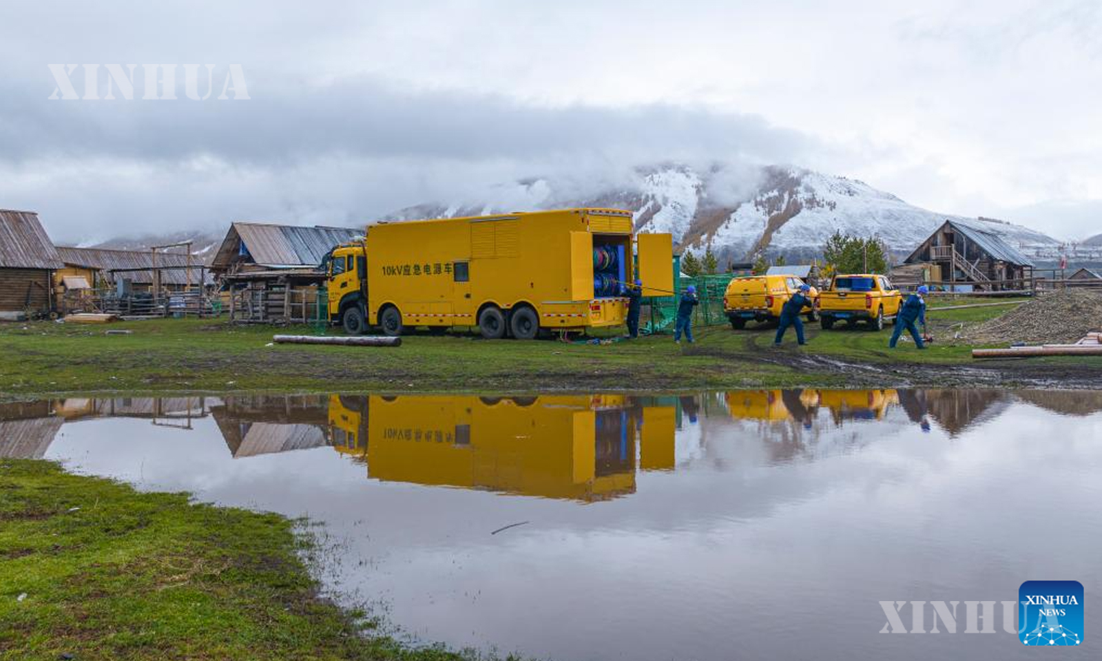 Photo (8) Staff members of State Grid’s local branch adjust a power generation vehicle at the Kanas scenic area of Altay, northwest China’s Xinjiang Uygur Autonomous Region, Oct. 2, 2025. (Photo by Nuerbek Nurman/Xinhua)
