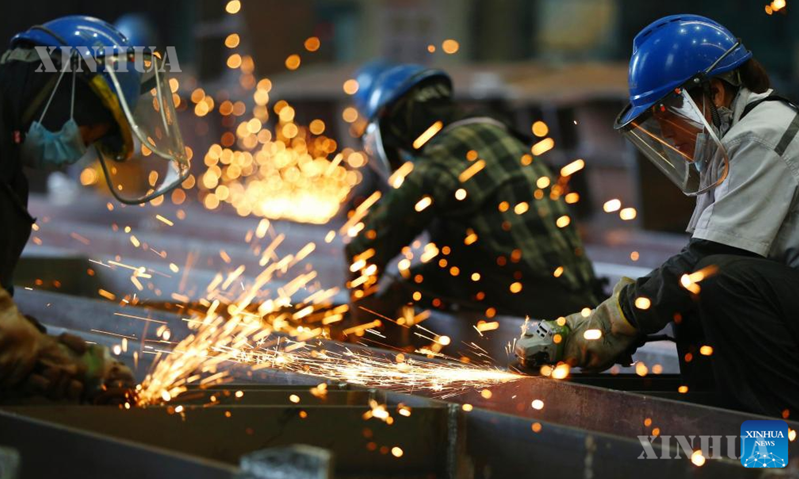 တရုတ်နိုင်ငံ အရှေ့ပိုင်း ဆန်းတုန်းပြည်နယ် ထိန်ကျိုးမြို့ ရှိအလုပ်ရုံတစ်ခုတွင် သံမဏိ အစိတ်အပိုင်းများ ပွတ်တိုက်နေကြသည့် အလုပ်သမားများကို ၂၀၂၅ ခုနှစ် အောက်တိုဘာ ၂ ရက်က တွေ့ရစဥ် (ဆင်ဟွာ)