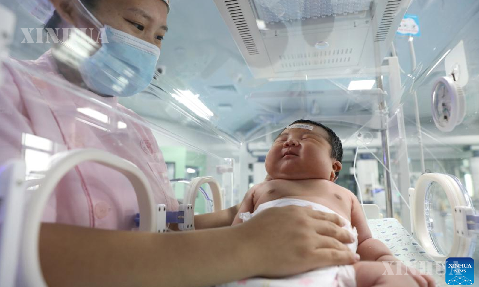 တရုတ်နိုင်ငံအလယ်ပိုင်း ဟဲနန်ပြည်နယ် ကျောက်ကျိုးမြို့ ဝန်းရှန့်ခရိုင်ရှိဆေးရုံတစ်ခုတွင် မွေးကင်းစ ကလေးငယ်အား ပွေ့ပိုက်ပြုစုစောင့်ရှောက်နေသည့် သူနာပြုဆရာမတစ်ဦးကို ၂၀၂၅ ခုနှစ် အောက်တိုဘာ ၁ ရက်က တွေ့ရစဥ် (ဆင်ဟွာ)