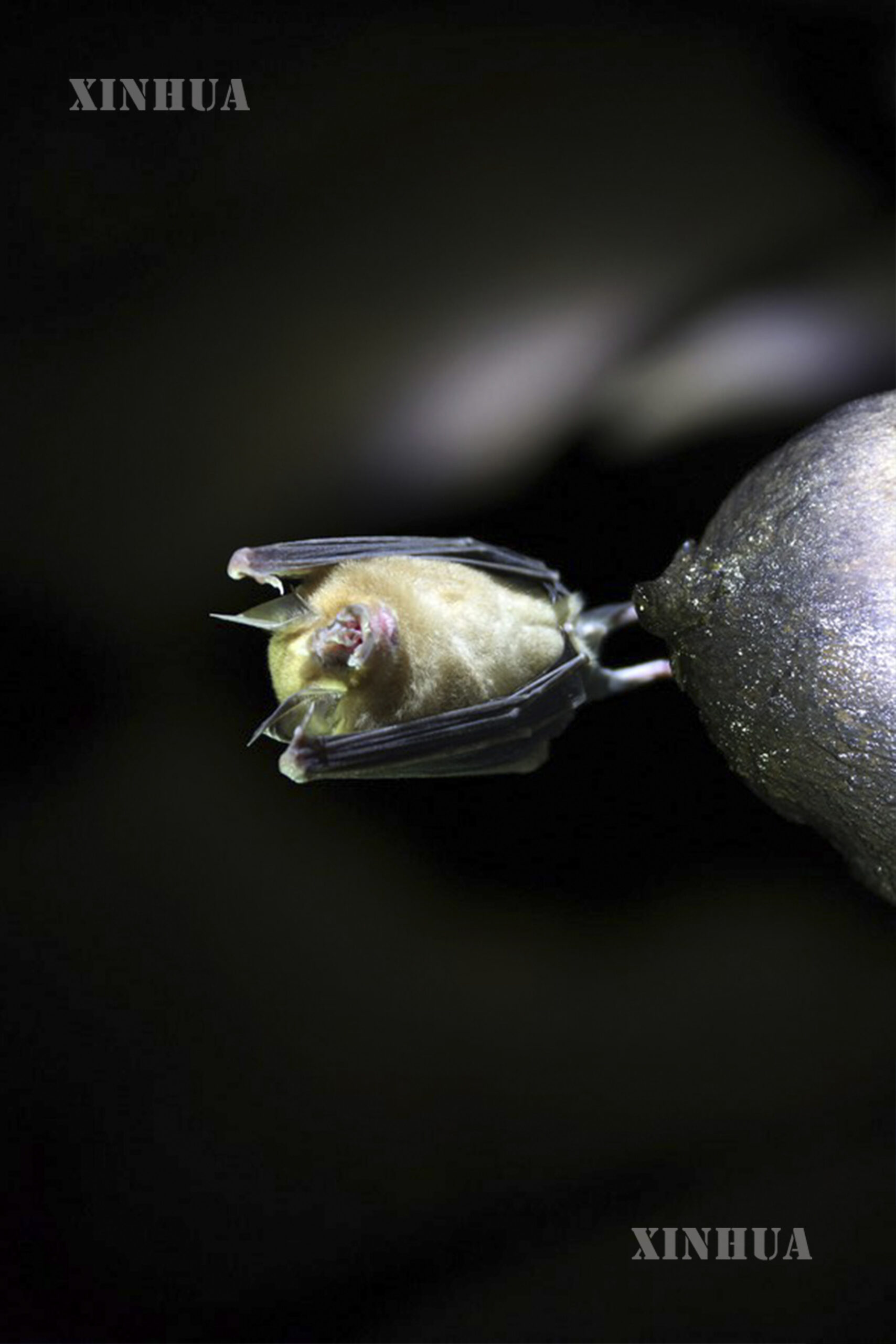 A bat is seen inside a karst cave named as “Laogan Cave” in Weining County of southwest China’s Guizhou Province, May 12, 2016. (Xinhua/He Huan)