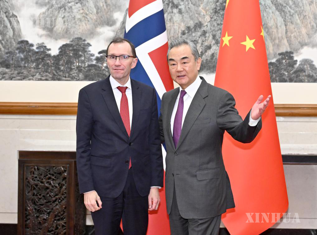 Chinese Foreign Minister Wang Yi, also a member of the Political Bureau of the Communist Party of China Central Committee, holds talks with Minister of Foreign Affairs of Norway Espen Barth Eide in Beijing, capital of China, Feb. 5, 2024. (Xinhua/Yue Yuewei)