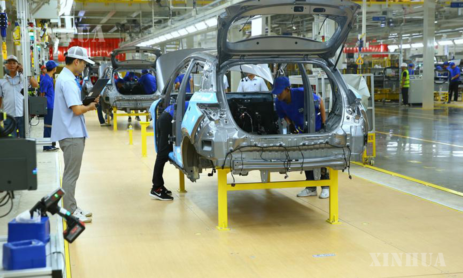 Workers operate at an assembly line of BYD’s new plant in Rayong province, Thailand, July 4, 2024. (Xinhua/Sun Weitong)