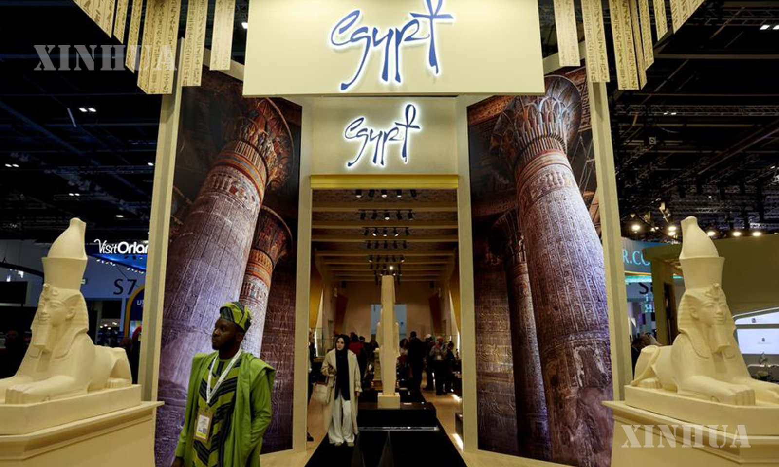 People visit the booth of Egypt during the World Travel Market (WTM) London 2025 in London, Britain, Nov. 4, 2025. (Xinhua/Li Ying)