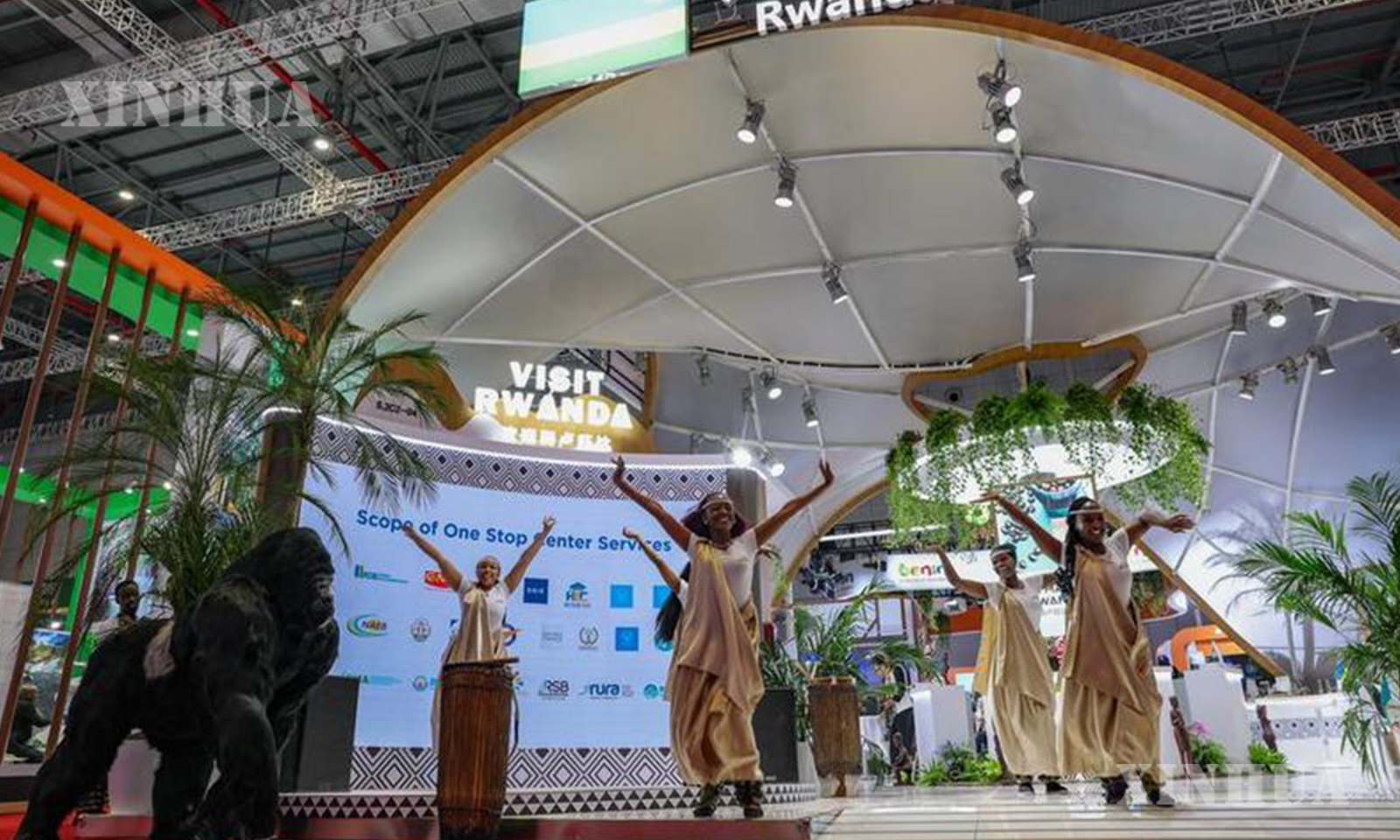 တရုတ်နိုင်ငံ အရှေ့ပိုင်း ရှန်ဟိုင်းမြို့တွင် ကျင်းပသည့် ၈ ကြိမ်မြောက် တရုတ်နိုင်ငံတကာသွင်းကုန်ပြပွဲအတွင်း ရဝမ်ဒါနိုင်ငံပြခန်း၌ အကဖြင့် ဖျော်ဖြေတင်ဆက်နေသူများအား ၂၀၂၅ ခုနှစ် နိုဝင်ဘာ ၅ ရက်က တွေ့ရစဉ် (ဆင်ဟွာ)