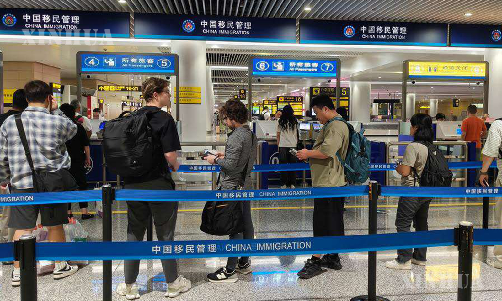 Foreign travellers wait to go through the immigration check at Chongqing Jiangbei International Airport in southwest China’s Chongqing, Oct. 1, 2025. (Photo by Zeng Yanyan/Xinhua)