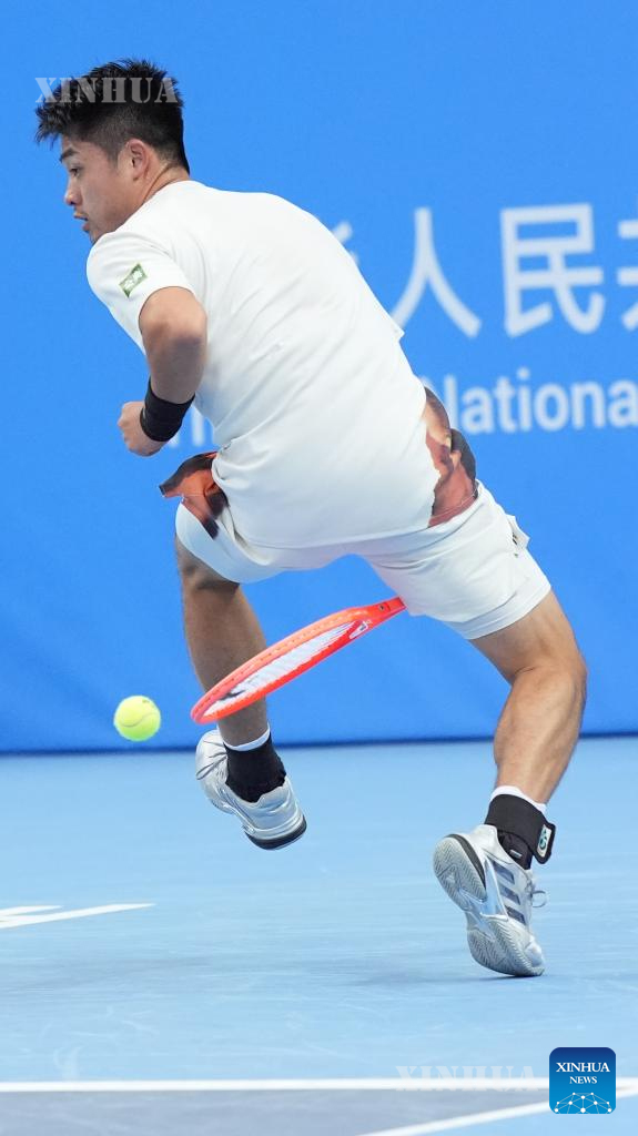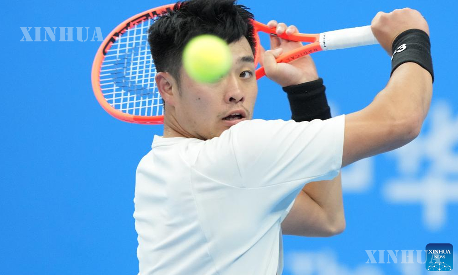 တရုတ်နိုင်ငံ တောင်ပိုင်း ကွမ်တုန်းပြည်နယ် ဟန်ချင်ကျွန်းတွင် တရုတ်နိုင်ငံ၏ ၁၅ ကြိမ်မြောက် အမျိုးသားအားကစားပြိုင်ပွဲ၌ မြို့တော်ပေကျင်းမှ ရှန်းကျွင့်ချိန် နှင့် ကျဲ့ကျန်းပြည်နယ်မှ ဝူရိပင်တို့၏ တင်းနစ်အမျိုးသားတစ်ဦးချင်းဖိုင်နယ်ပွဲအတွင်း တစ်ဖက်ကစားသမားမှ ရိုက်လိုက်သည့် တင်းနစ်ဘောလုံးအား ပြန်ရိုက်နေသည့် ဝူရိပင်ကို ၂၀၂၅ ခုနှစ် နိုဝင်ဘာ ၂၀ ရက်က တွေ့ရစဉ် (ဆင်ဟွာ)