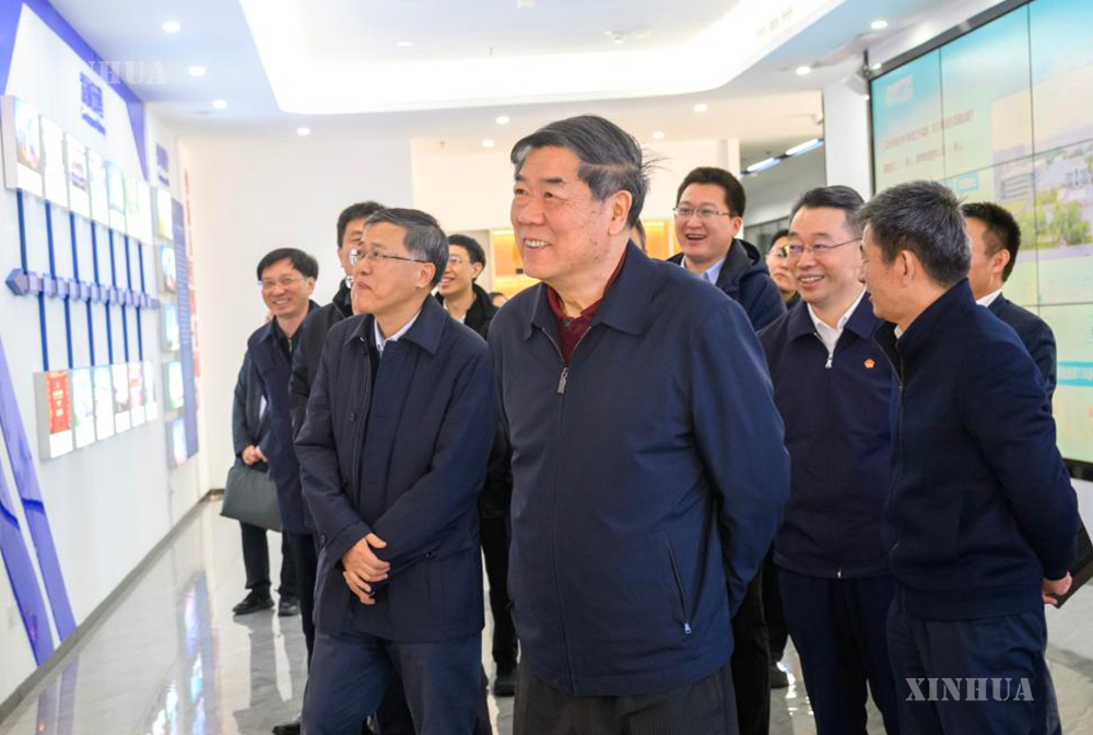 တရုတ်နိုင်ငံအလယ်ပိုင်း ဟူပေပြည်နယ် ရှန်နင်မြို့ရှိ အဆင့်မြင့်နည်းပညာကုမ္ပဏီတစ်ခုကို တရုတ်ကွန်မြူနစ်ပါတီ ဗဟိုကော်မတီ၏ နိုင်ငံရေးဗျူရိုအဖွဲ့ဝင်တစ်ဦးလည်းဖြစ်သည့် တရုတ်နိုင်ငံ ဒုတိယဝန်ကြီးချုပ် ဟယ်လိဖုန်း စစ်ဆေးနေသည်ကို ၂၀၂၅ ခုနှစ် နိုဝင်ဘာ ၁၉ ရက်က တွေ့ရစဥ် (ဆင်ဟွာ)