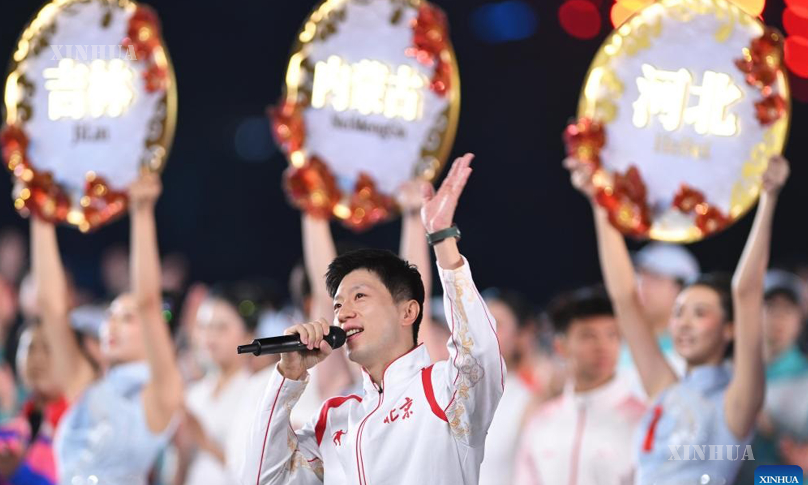 Photo 5: Ma Long of Beijing is seen during the closing ceremony of China’s 15th National Games in Shenzhen, south China’s Guangdong Province, Nov. 21, 2025. (Xinhua/Zhang Long)