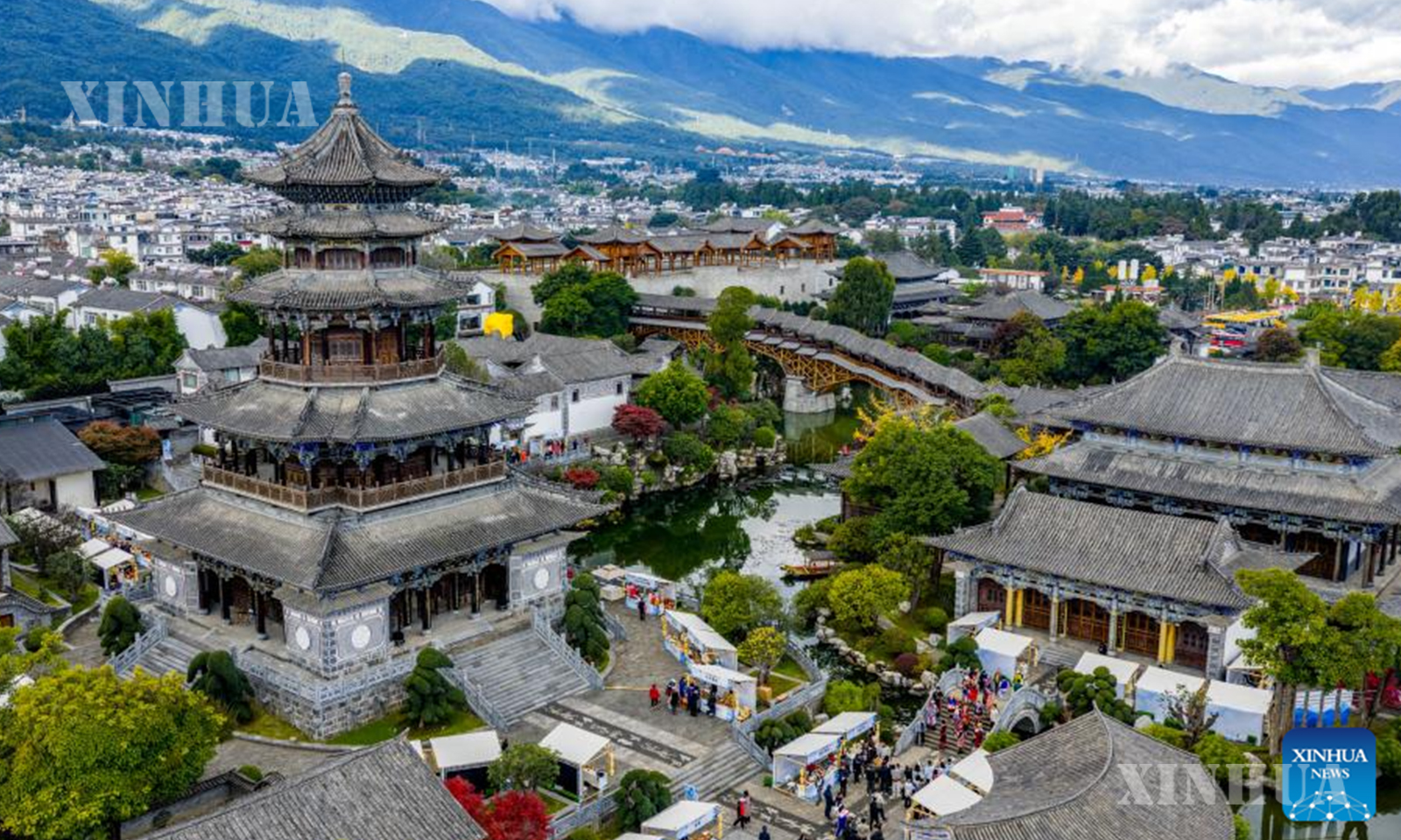 A drone photo taken on Nov. 23, 2025 shows a promotion week for intangible cultural heritage brands held in Dali, southwest China’s Yunnan Province.