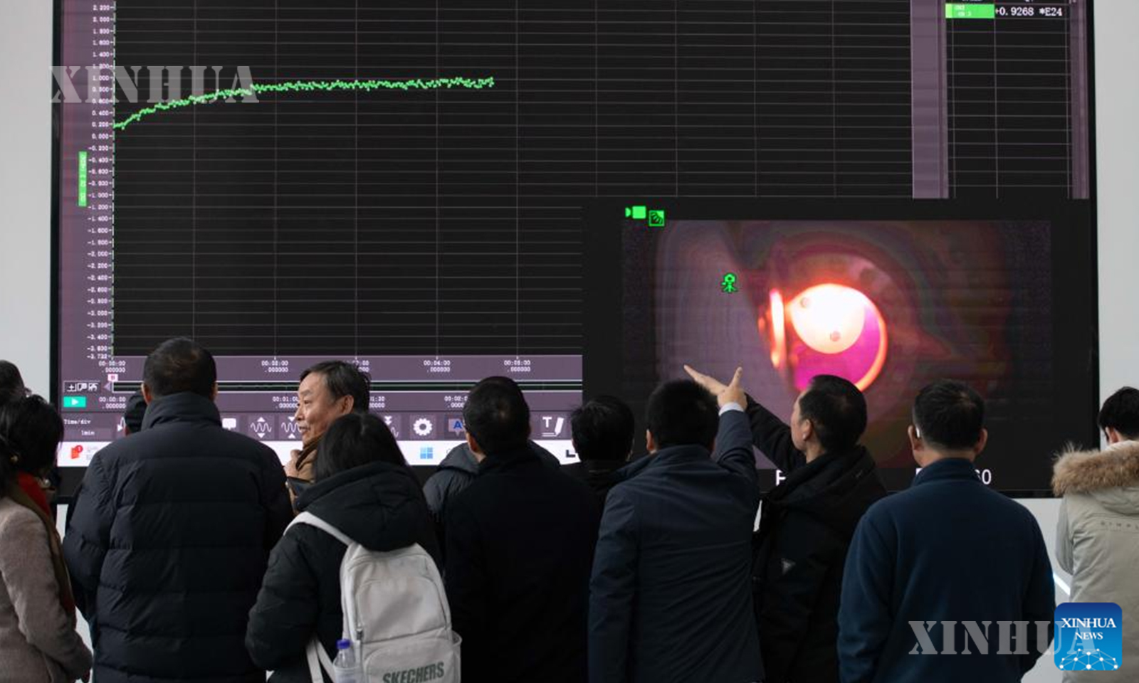 တရုတ်နိုင်ငံ အရှေ့ပိုင်း အန်းဟွေးပြည်နယ် ဟဲဖေမြို့တွင် Linear Plasma Generator ၏ လည်ပတ်မှုအခြေအနေအား ဖန်သားပြင်မှတစ်ဆင့် လေ့လာကြည့်ရှုနေကြသည့် သုတေသီများကို ၂၀၂၅ ခုနှစ် ဇန်နဝါရီ ၁၄ ရက်က တွေ့ရစဉ် (ဆင်ဟွာ)