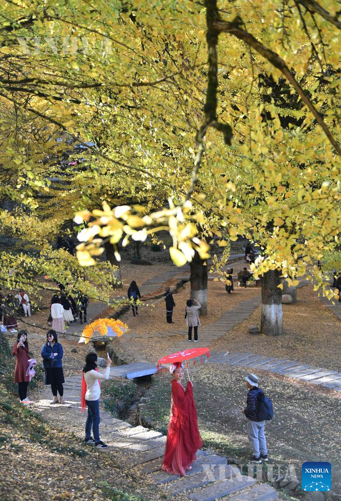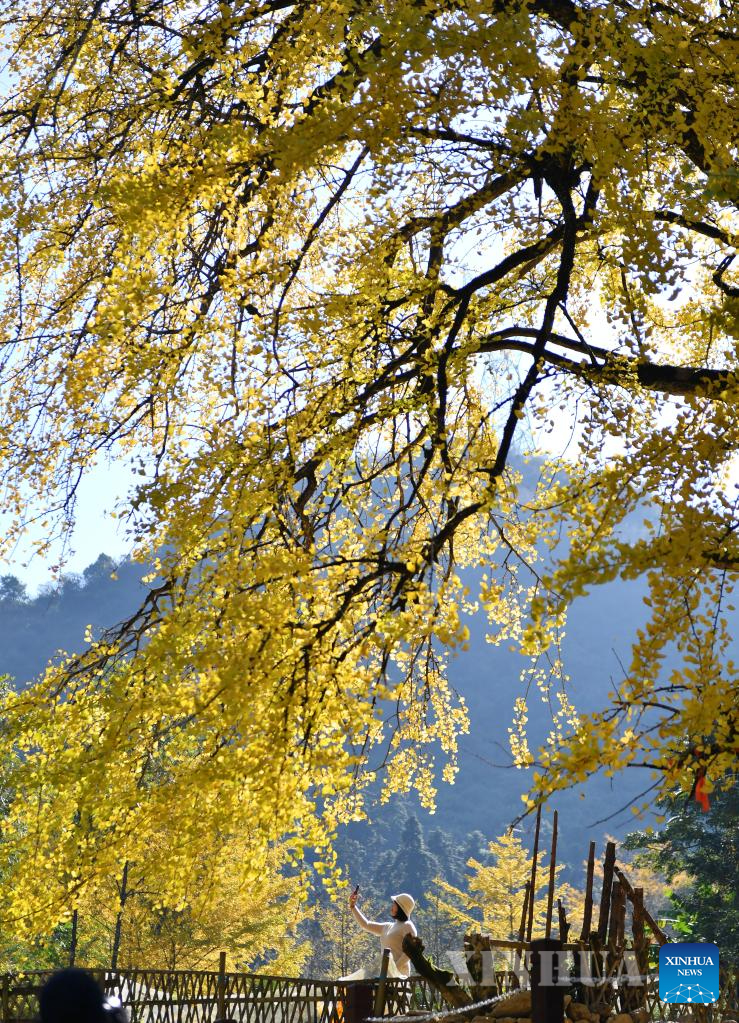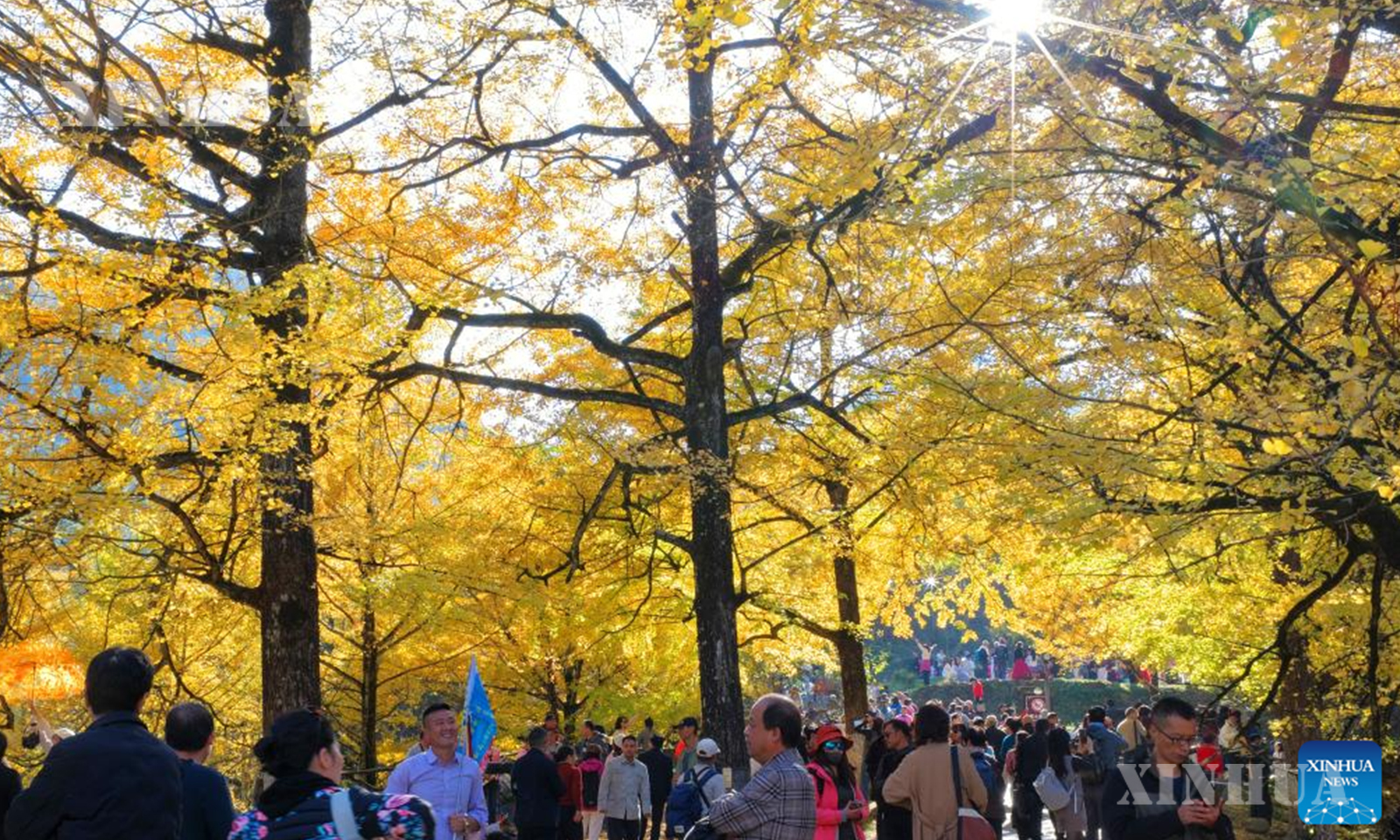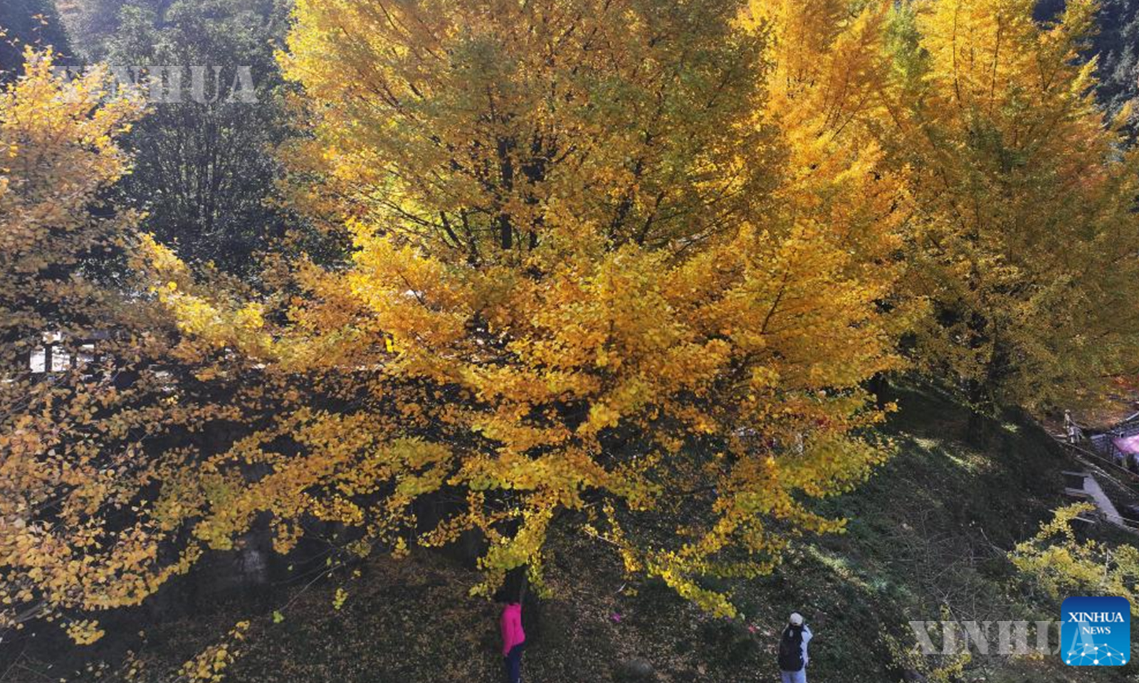 YONGZHOU, Nov. 24 (Xinhua) — More than 3,000 ginkgo trees in Tongziao Village, Shuangpai County, Yongzhou City, central China’s Hunan Province. have gradually turned golden, attracting a lot of tourists.