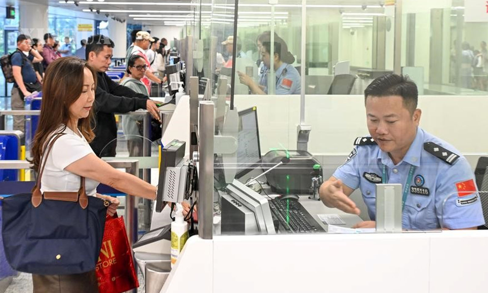 Photo : Inbound passengers go through border inspection procedures at Haikou Meilan International Airport in Haikou, south China’s Hainan Province, Oct. 15, 2025. (Xinhua/Yang Guanyu)