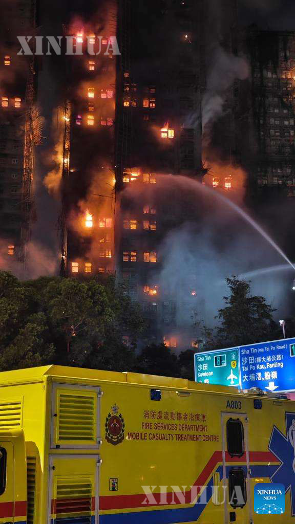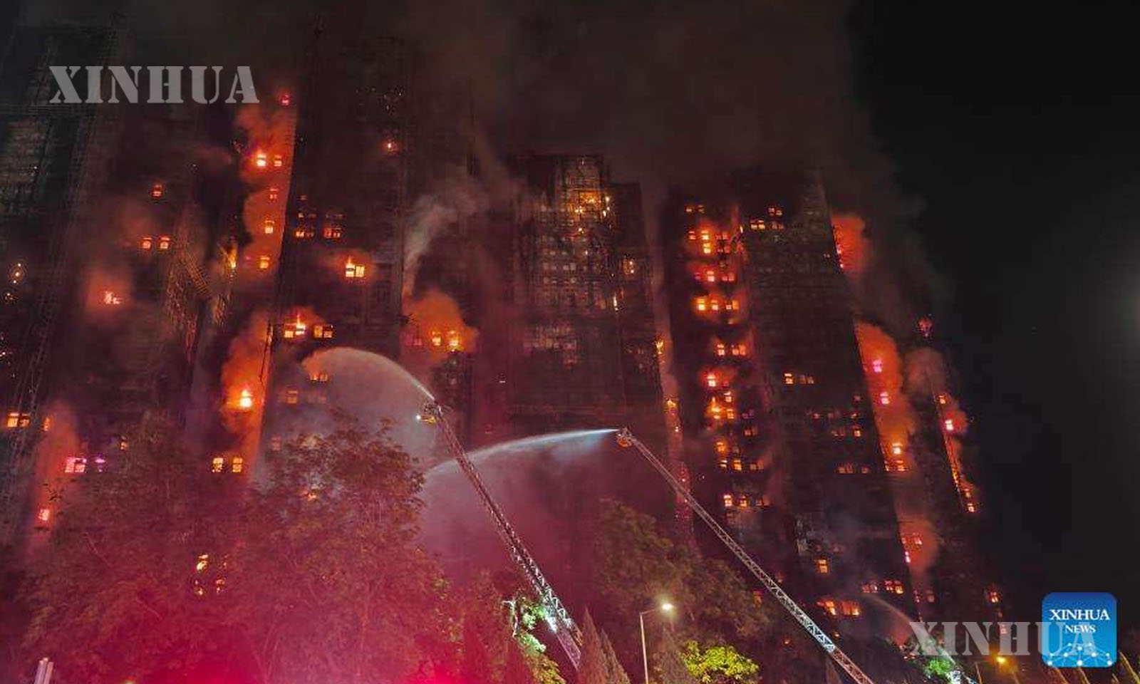 ဟောင်ကောင်အထူးကိုယ်ပိုင်အုပ်ချုပ်ခွင့်ရဒေသမှ တာ့ဖူ ခရိုင်ရှိ လူနေအဆောက်အအုံတစ်ခုတွင် နိုဝင်ဘာ ၂၆ ရက် မွန်းလွဲပိုင်းက အကြီးအကျယ်မီးလောင်ကျွမ်းမှုတစ်ခု ဖြစ်ပွားခဲ့ခြင်းဖြစ်သည်။ (Xinhua)