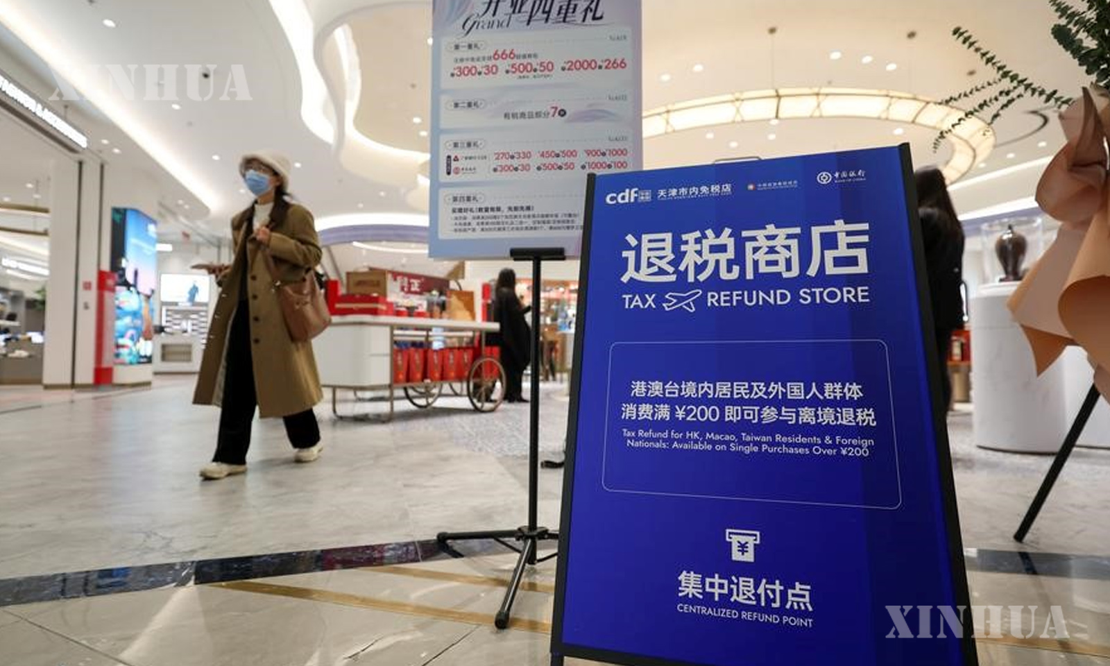 Photo (6)-A sign of tax refund point is seen at a downtown duty-free shop in north China’s Tianjin Municipality, Nov. 28, 2025. (Xinhua/Sun Fanyue)