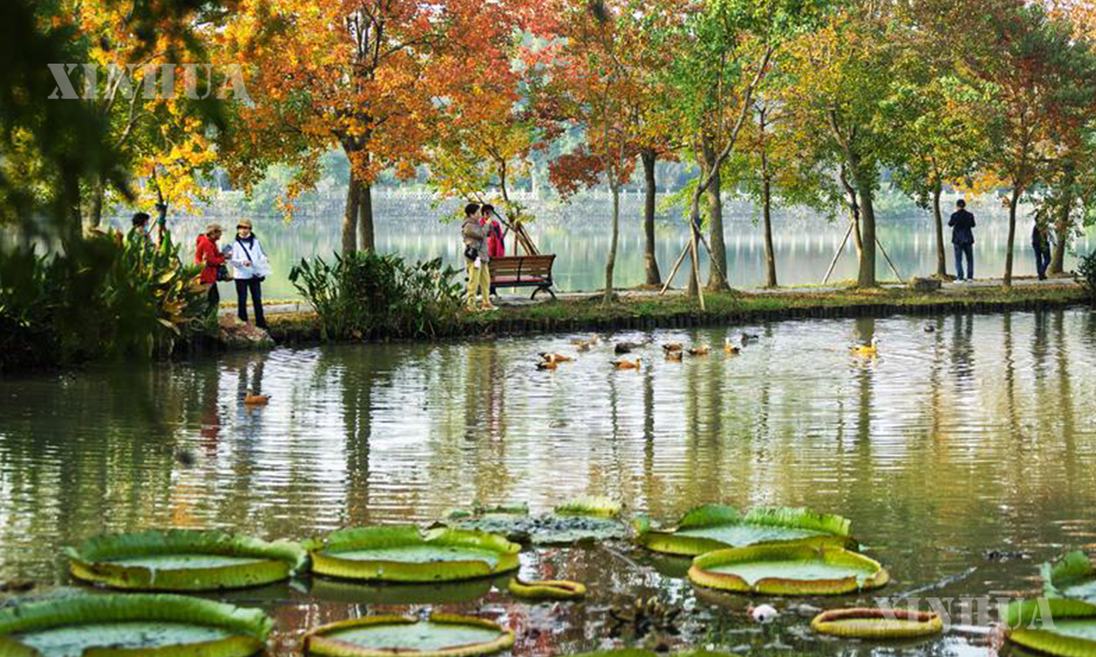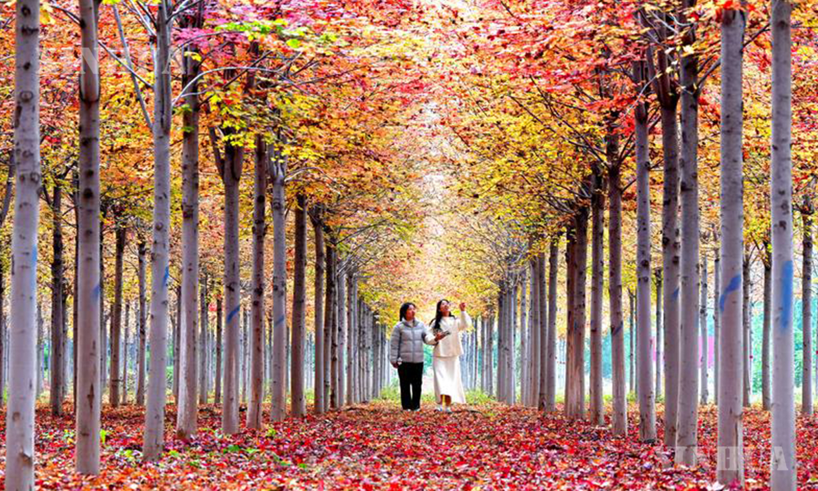 တရုတ်နိုင်ငံ အရှေ့မြောက်ပိုင်း ဟေးလုံကျန်းပြည်နယ် မိဆန်းမြို့ ရှင်းခိုင်းရေကန်၏ ဆောင်းဦးအလှမြင်ကွင်းအား ၂၀၂၅ ခုနှစ် အောက်တိုဘာ ၂၄ ရက်က တွေ့ရစဉ် (ဆင်ဟွာ)