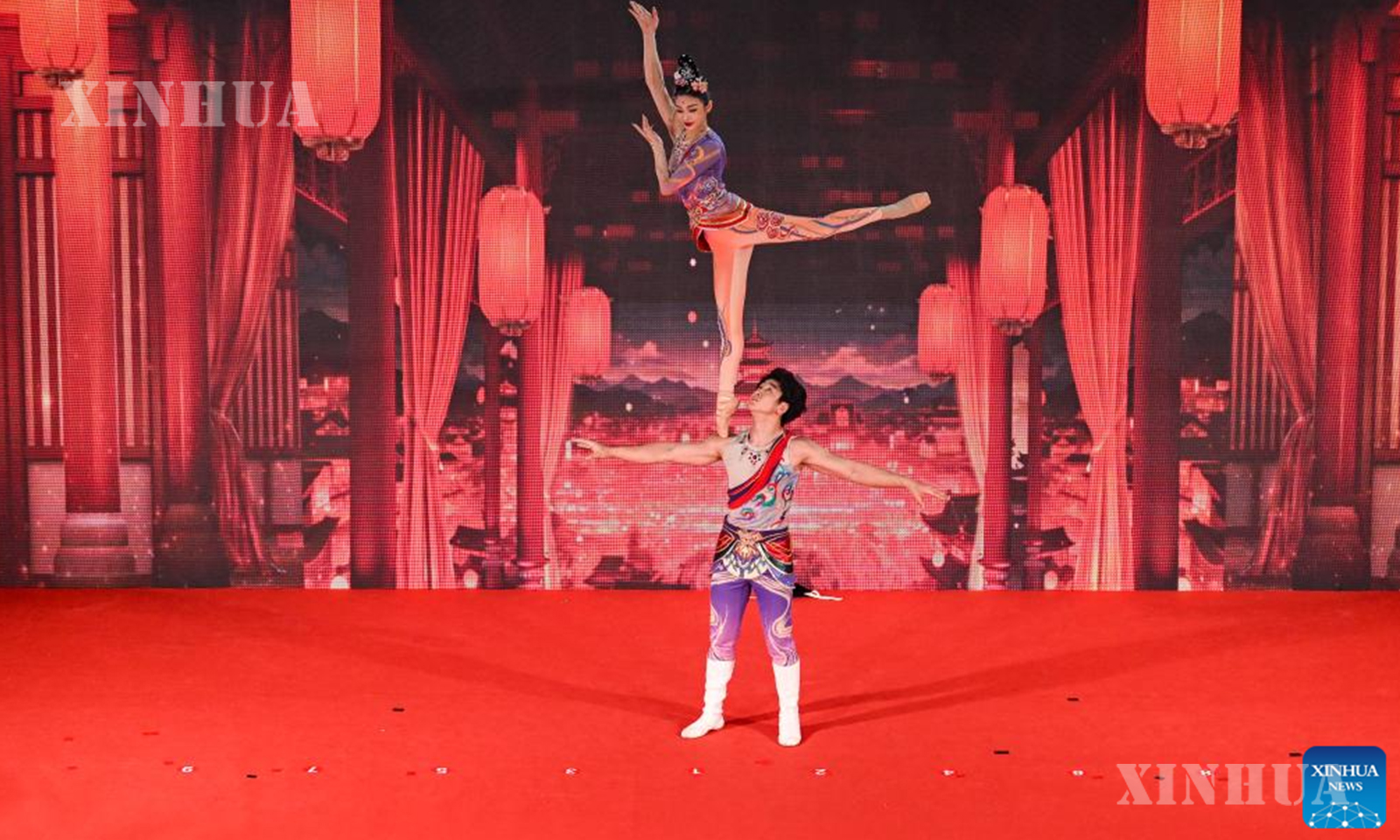 အဆိုပါအခမ်းအနားတွင် ရာသီချိန် ၂၄ ခု ဗုံတီးခတ်ခြင်း၊ ကျွမ်းဘားအလှကပြခြင်းနှင့် ရိုးရာသီချင်းသီဆိုခြင်းများ အပါအဝင် ဆွဲဆောင်မှုရှိသော ဖျော်ဖြေမှုအမျိုးမျိုး ပါဝင်ခဲ့ကြောင်း သိရသည်။ (Xinhua)