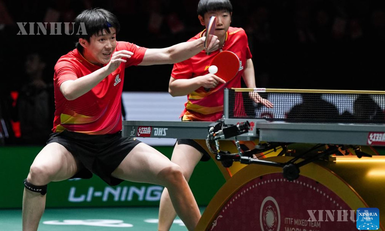 တရုတ်နိုင်ငံ အနောက်တောင်ပိုင်း စီချွမ်းပြည်နယ် ချိန်တူးမြို့၌ ကျင်းပသည့် ITTF ကျားမအဖွဲ့လိုက် ကမ္ဘာ့ဖလားပြိုင်ပွဲတွင် တရုတ်အသင်းနှင့် ဂျပန်အသင်းတို့၏ ဗိုလ်လုပွဲ၊ ဂျပန်အသင်းမှ အိုဒို ဆာဆူကီနှင့် မတ်ဆူရှီးမား ဆိုရာတို့နှင့် ကျားမနှစ်ယောက်တွဲပွဲစဉ်အတွင်း ယှဉ်ပြိုင်နေသည့် တရုတ်အသင်းမှ ဝမ်ချူချင်းနှင့် စွန်းရင်ဆား (ယာဘက်) တို့ကို ၂၀၂၅ ခုနှစ် ဒီဇင်ဘာ ၇ ရက်က တွေ့ရစဉ် (ဆင်ဟွာ)