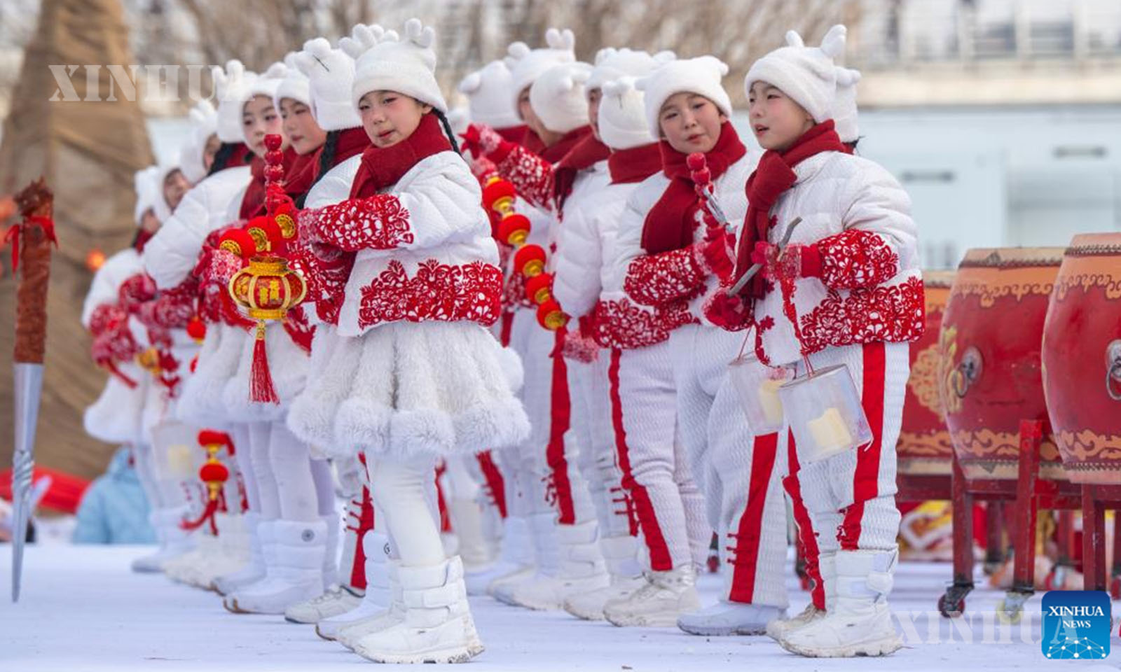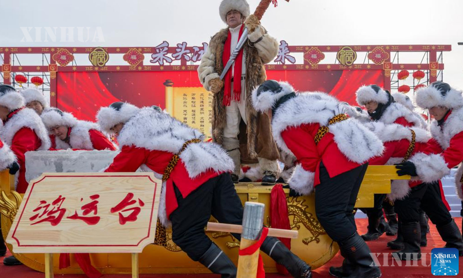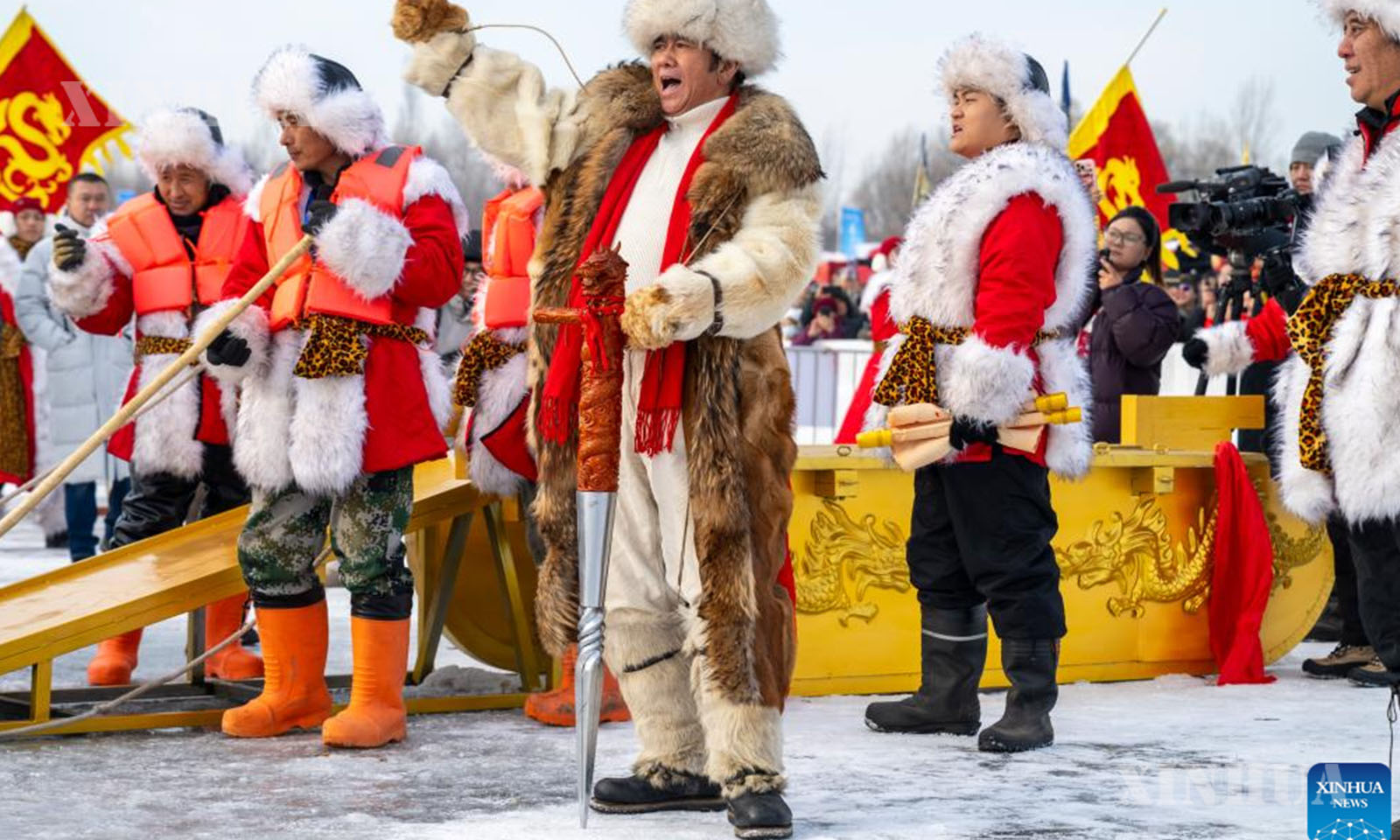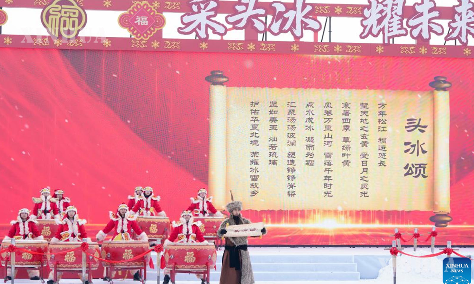 The opening ceremony of an ice collecting festival is held in Harbin, northeast China’s Heilongjiang Province, Dec. 7, 2025. (Xinhua/Wang Song)