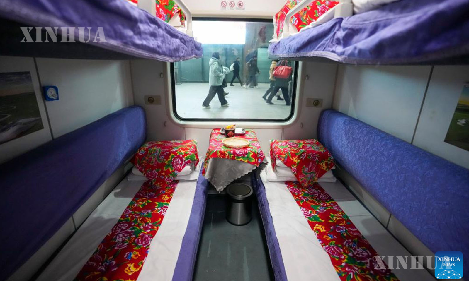 This photo taken on Dec. 22, 2025 shows a sleeping compartment of Train K7041 at Harbin Railway Station in Harbin, northeast China’s Heilongjiang Province. (Xinhua/Wang Song)