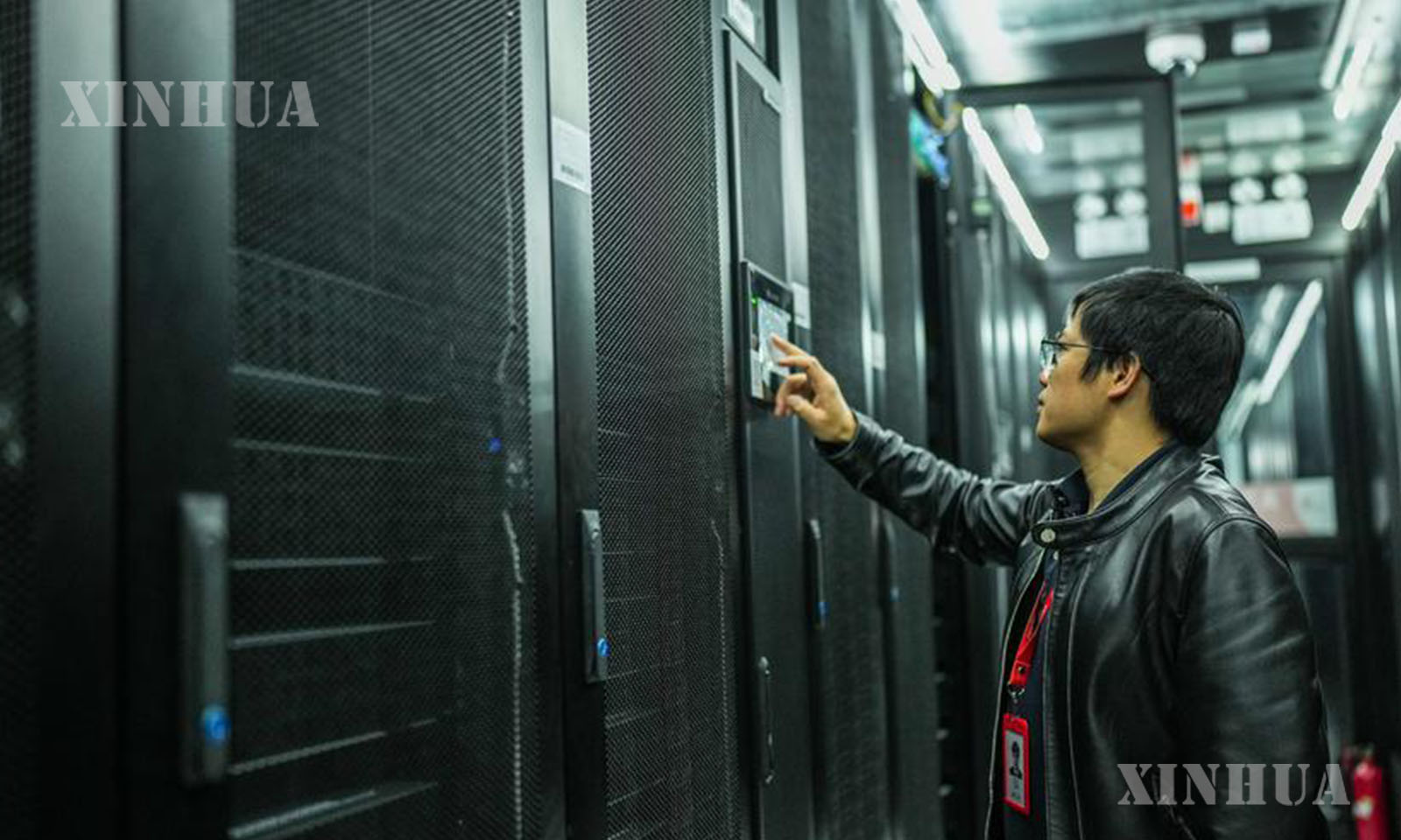 A staff member inspects the micro module room in Gui’an Data Center of China Unicom in Gui’an New Area, southwest China’s Guizhou Province, on May 23, 2023. (Xinhua/Tao Liang)
