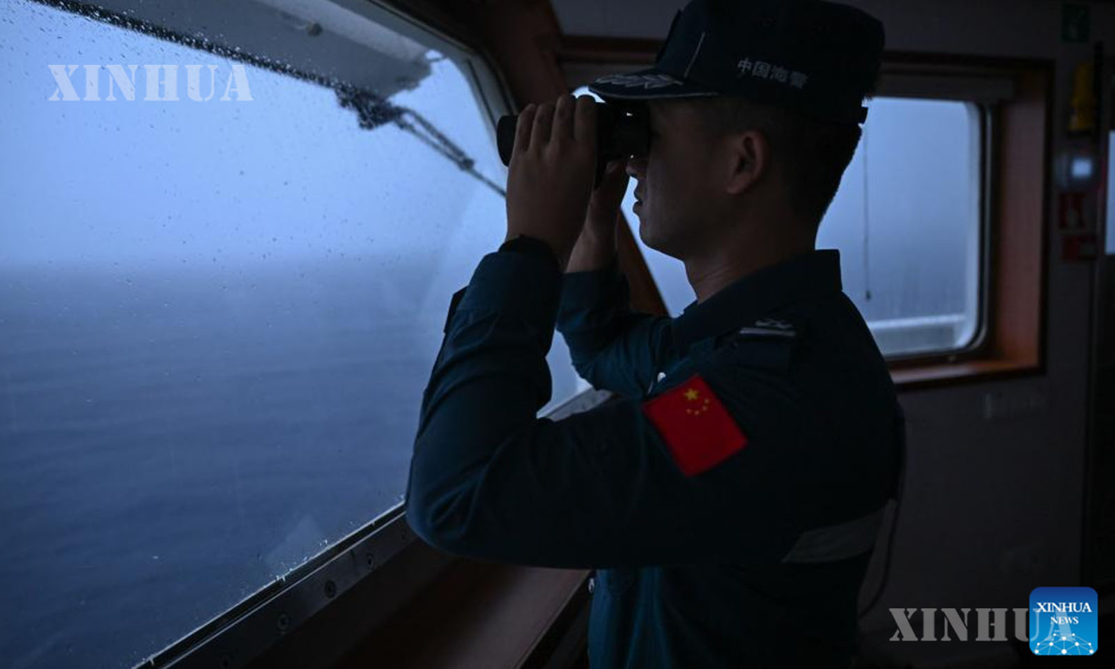 A law enforcer observes on the China Coast Guard (CCG) vessel Huangyan during a patrol mission in the territorial waters of China’s Huangyan Dao, Nov. 22, 2025. (Xinhua/Bei He)