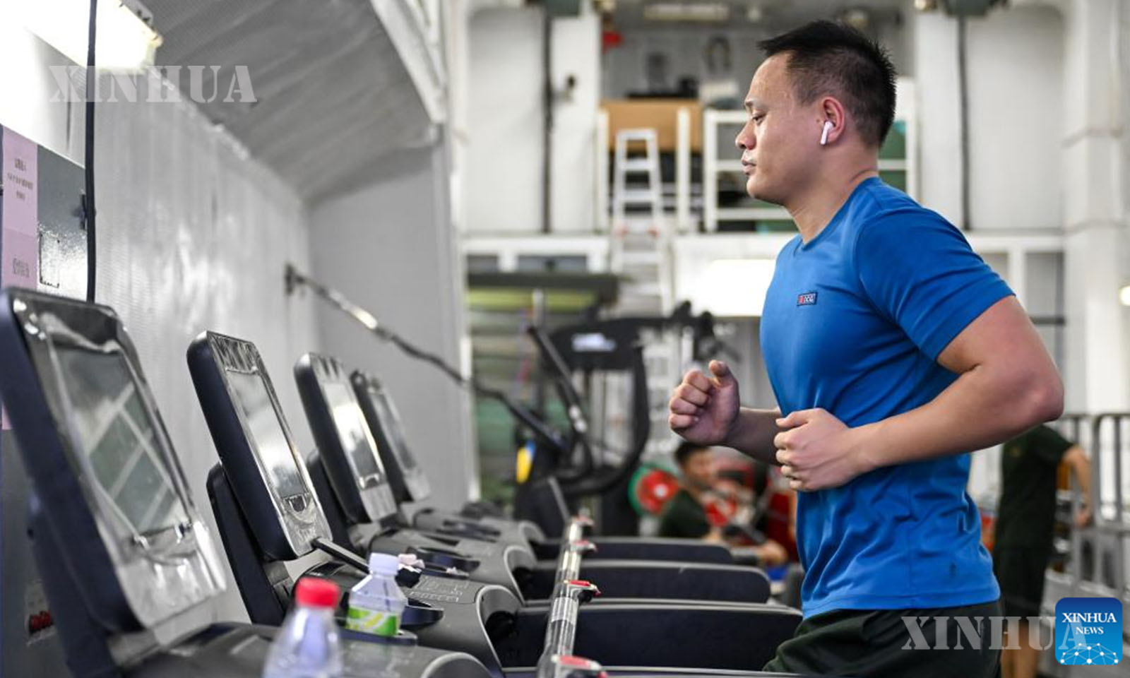 A law enforcer exercises on the China Coast Guard (CCG) vessel Huangyan during a patrol mission in the territorial waters of China’s Huangyan Dao, Nov. 9, 2025. (Xinhua/Bei He)