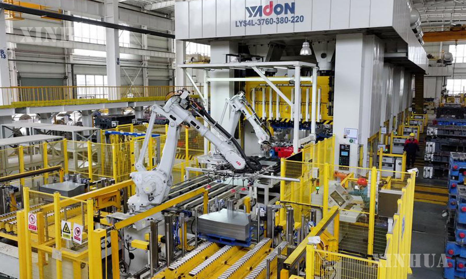 Robotic arms operate at a workshop of an auto parts manufacturing company in Feixi County of Hefei, east China’s Anhui Province, March 31, 2025. (Photo by Xu Yong/Xinhua)
