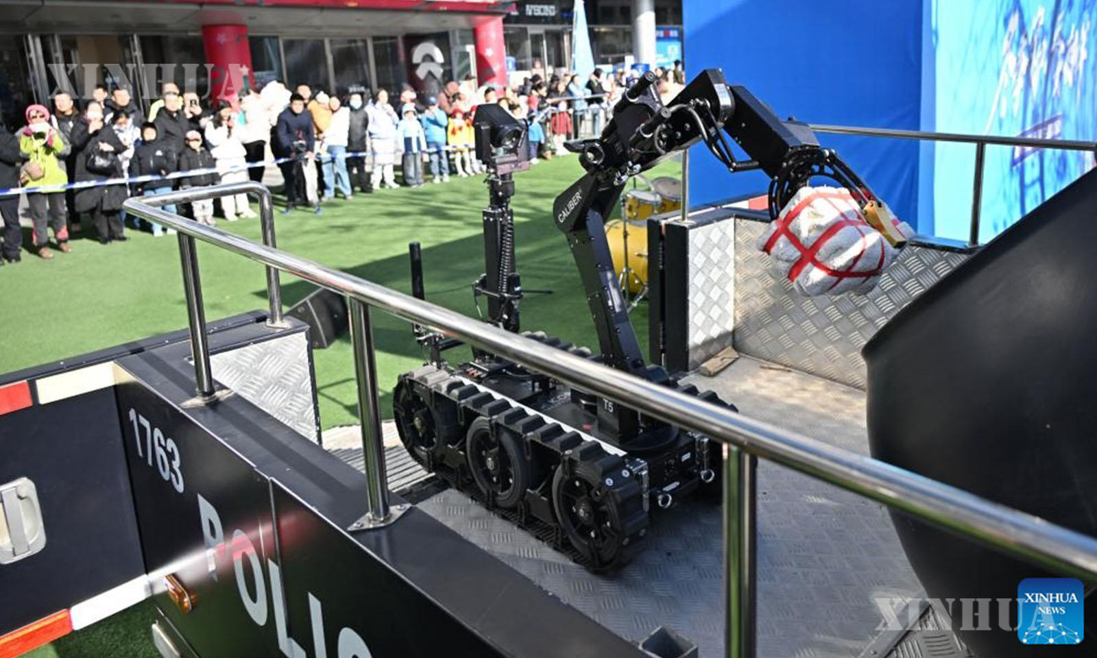 Photo 7: Citizens watch a robot display explosive disposal operation in Qingdao, east China’s Shandong Province, Jan. 10, 2026. (Xinhua/Li Ziheng)