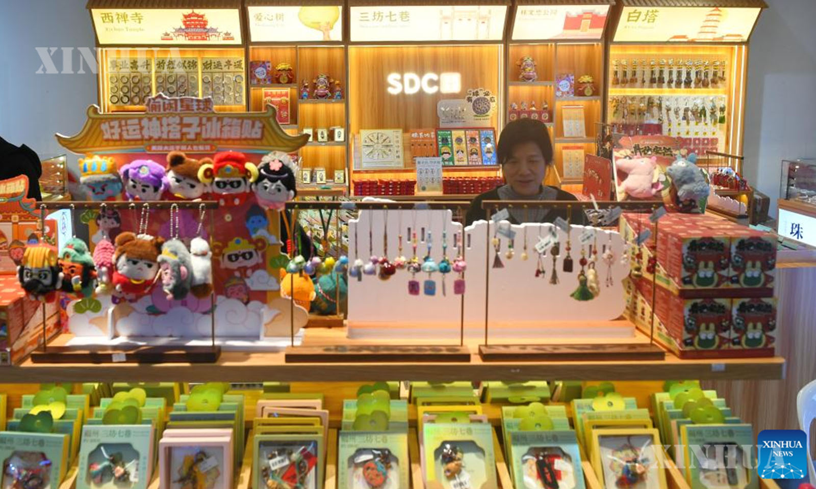 This photo shows cultural and creative products displayed at a store in Fuzhou, southeast China’s Fujian Province, Jan. 9, 2026. (Xinhua/Lin Shanchuan)