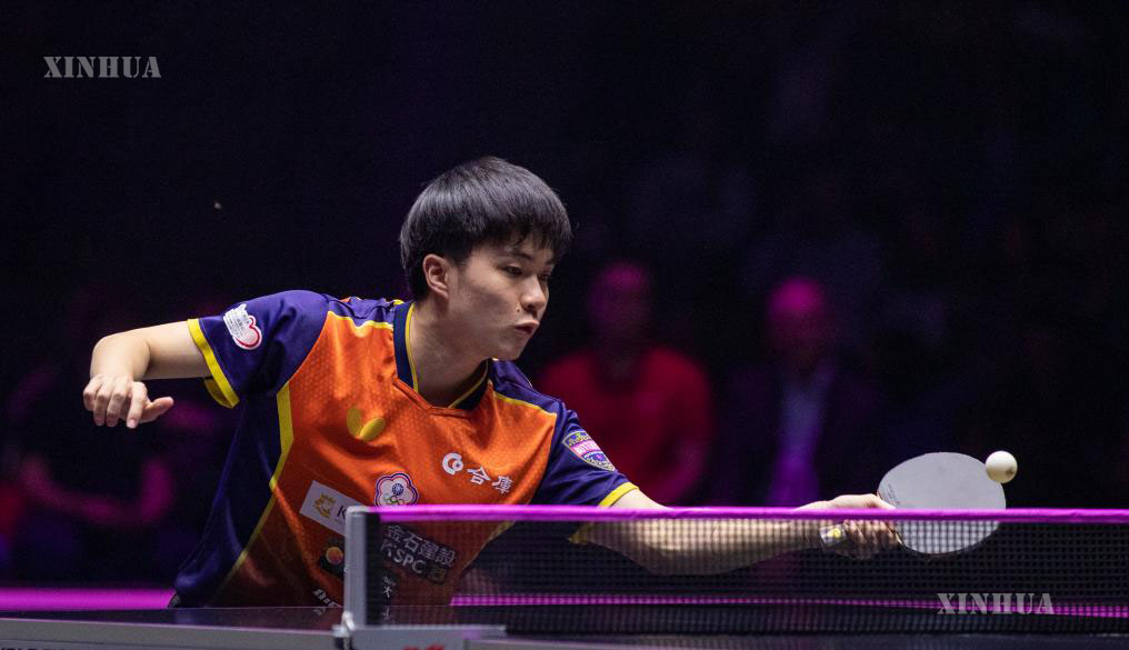 ဂျာမနီနိုင်ငံ ဖရန့်ဖွတ်မြို့၌ ကျင်းပသည့် ၂၀၂၃ ခုနှစ် ဖရန့်ဖွတ် WTT ချန်ပီယံပြိုင်ပွဲတွင် တရုတ်နိုင်ငံမှ Ma Long နှင့် အမျိုးသားတစ်ဦးချင်းဖိုင်နယ်ပွဲစဉ်အတွင်း ဘောလုံးအား ပြန်ရိုက်နေသည့် တရုတ်ထိုင်ပေမှ Lin Yun-Ju ကို ၂၀၂၃ ခုနှစ် နိုဝင်ဘာ ၅ ရက်က တွေ့ရစဉ် (ဆင်ဟွာ)