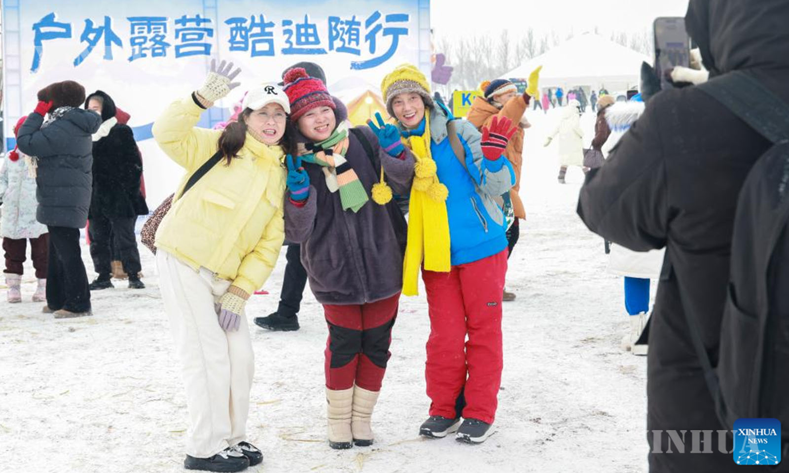 Tourists pose for photos at a camping festival in Qiqihar City, northeast China’s Heilongjiang Province, on Jan. 12, 2026. (Photo by Xu Shuai/Xinhua)
