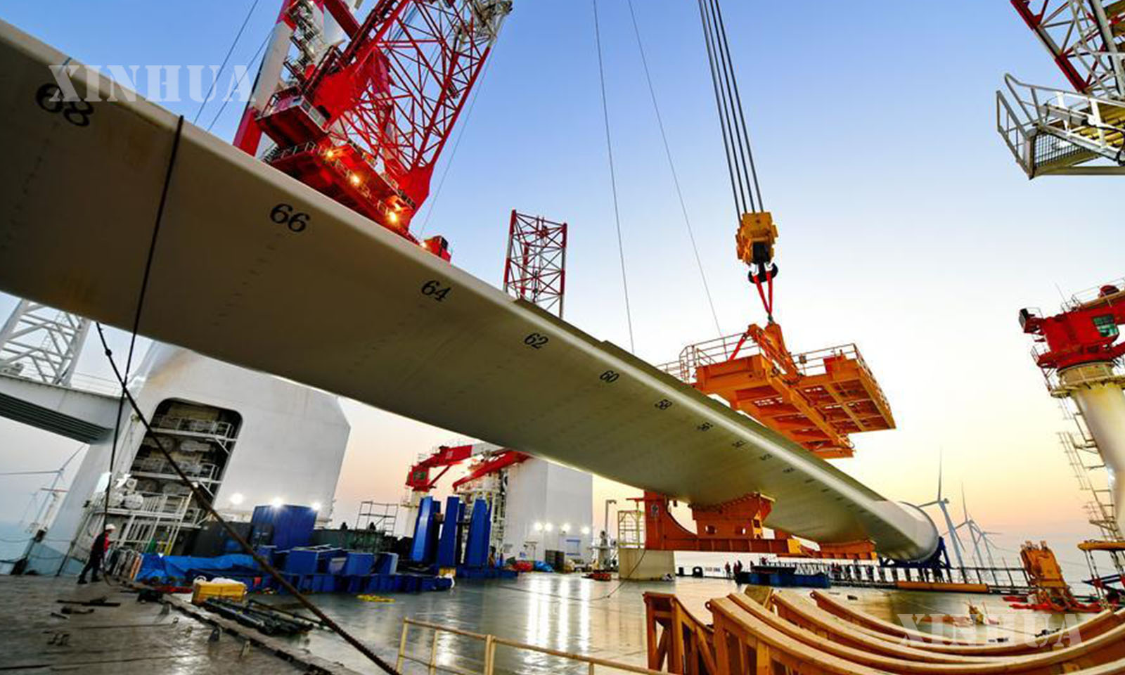 ၂၀ မဂ္ဂါဝပ် ကမ်းလွန်လေအားလျှပ်စစ်တာဘိုင်ယူနစ်ကို တရုတ်နိုင်ငံ အရှေ့တောင်ပိုင်း ဖူကျန့်ပြည်နယ် ကမ်းရိုးတန်းရေပြင်တွင် ဇန်နဝါရီ ၁၃ ရက်က အောင်မြင်စွာတပ်ဆင်ပြီးစီးခဲ့ကြောင်း သိရသည်။ (Xinhua)