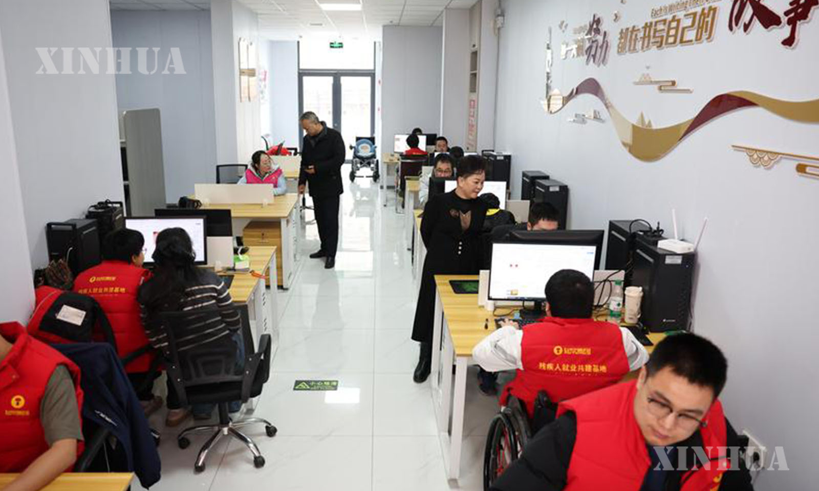 တရုတ်နိုင်ငံ လန်ကျိုးမြို့ စိတ်နှလုံးချင်းဆက်နွှယ်သော လူမှုလုပ်ငန်းဝန်ဆောင်မှုစင်တာ မသန်စွမ်းသူများအလုပ်ရုံတွင် ဒေတာမှတ်သားသည့်အလုပ် လုပ်ကိုင်နေကြသည့် ပထမအသုတ် အသိအမှတ်ပြုလက်မှတ်ရပြီး လုပ်ငန်းခွင်ဝင်နေကြသော AI လေ့ကျင့်ရေးဆရာများအား ၂၀၂၆ ခုနှစ် ဇန်နဝါရီ ၁၄ ရက်က တွေ့ရစဉ် (ဆင်ဟွာ)