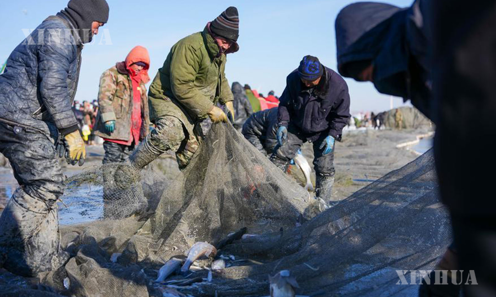 မြူးမြူးကြွကြွဒရမ်တီးသံများဖြင့် ချာကန်းရေကန်၏ ရေခဲပြင်တွင် မြင်းများက အပေါ်မှဆွဲကာ ရေခဲမျက်နှာပြင်အောက်မှ တစ်ကီလိုမီတာရှည်လျားသော ငါးဖမ်းပိုက်ကွန်ကို အပေါ်သို့ ဆွဲတင်ခဲ့သည်။