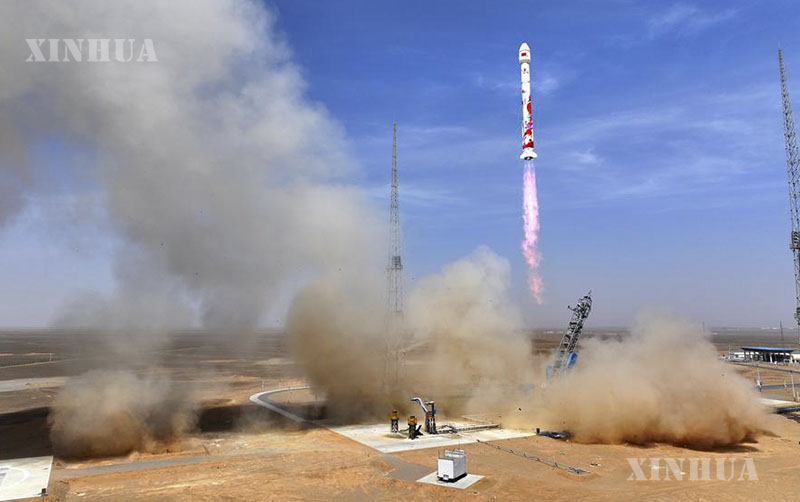 A commercial rocket coded ZQ-2E Y2 blasts off from the Dongfeng commercial space innovation pilot zone near the Jiuquan Satellite Launch Center in northwest China, May 17, 2025. (Photo by Wang Jiangbo/Xinhua)