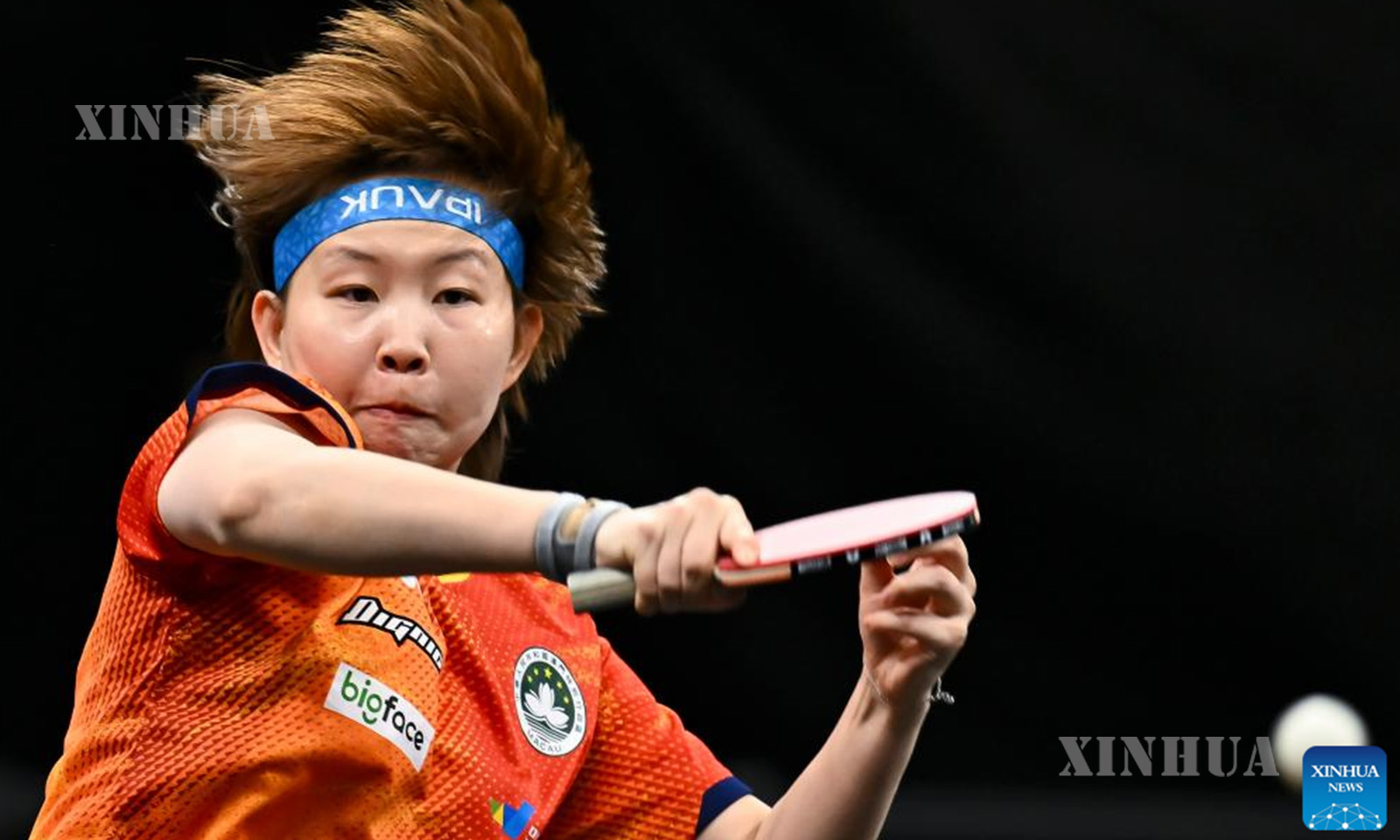 Zhu Yuling of China’s Macao hits a return during the women’s Singles final match against Sato Hitomi of Japan at the WTT Star Contender Doha 2026 in Doha, Qatar, on Jan. 18, 2026. (Photo by Nikku/Xinhua)