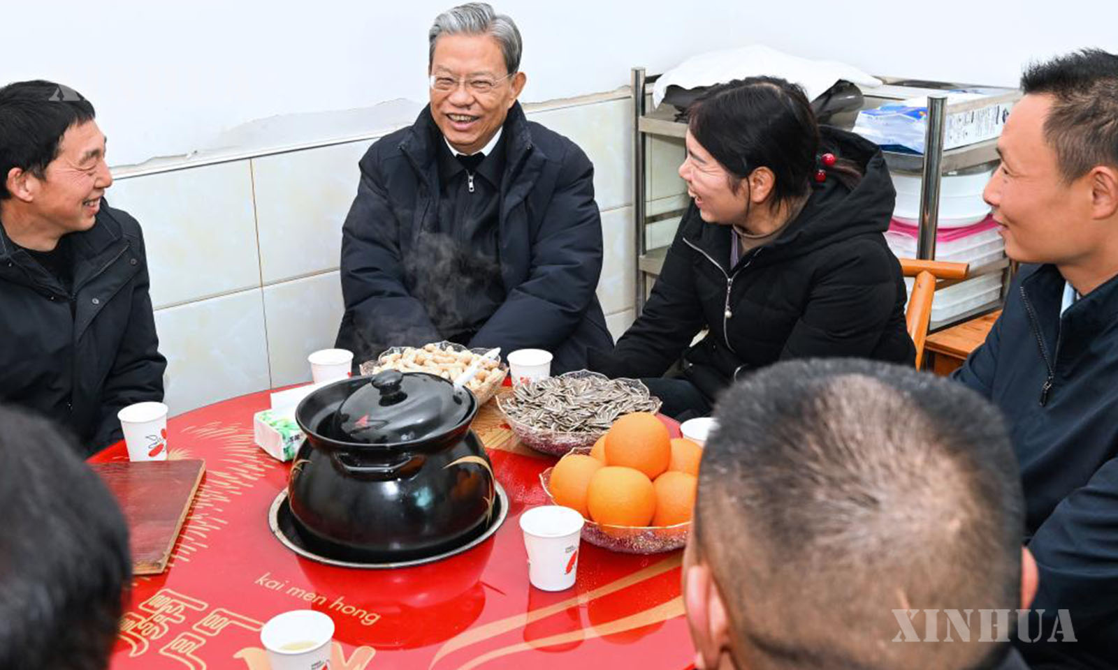 Zhao Leji, a member of the Standing Committee of the Political Bureau of the Communist Party of China Central Committee and chairman of the National People’s Congress Standing Committee, talks with local farmers in Changling Village of Maoping Town, Zigui County, Yichang City, central China’s Hubei Province, Jan. 23, 2026. (Xinhua/Rao Aimin)