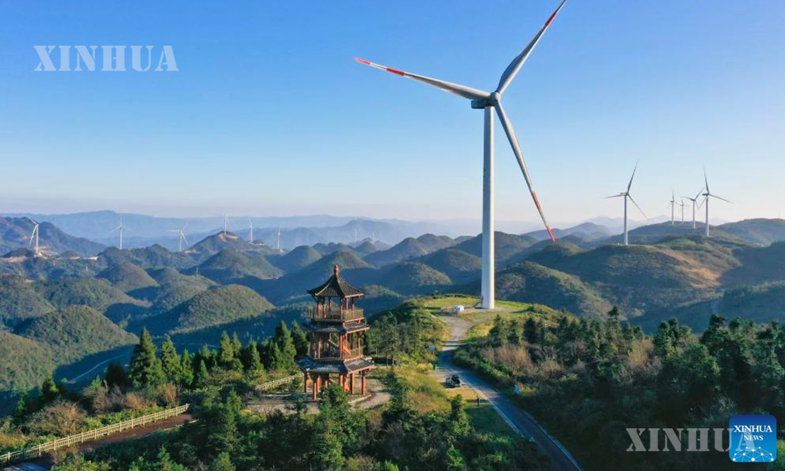 တရုတ်နိုင်ငံ အနောက်တောင်ပိုင်း ချုံချင့်မြို့ စီကျု ထူကျားလူမျိုးကိုယ်ပိုင်အုပ်ချုပ်ခွင့်ရခရိုင် ဝေါ့လုန်မြို့နယ်ရှိ လုပ်ငန်းလည်ပတ်လျက်ရှိသော လေစွမ်းအင်စီမံကိန်းကို ၂၀၂၅ ခုနှစ် အောက်တိုဘာ ၂၈ ရက်က တွေ့ရစဉ် (ဆင်ဟွာ)