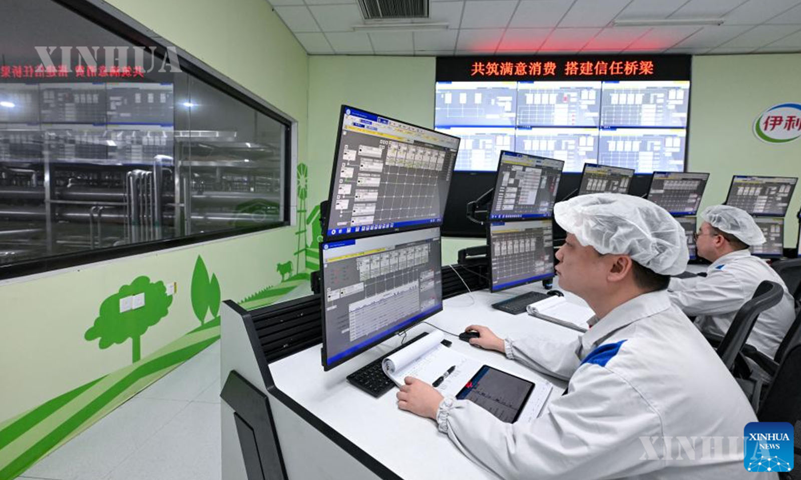 Staff members of Yili monitor the production data at the control room in Wuzhong, northwest China’s Ningxia Hui Autonomous Region, Jan. 27, 2026. (Xinhua/Feng Kaihua)