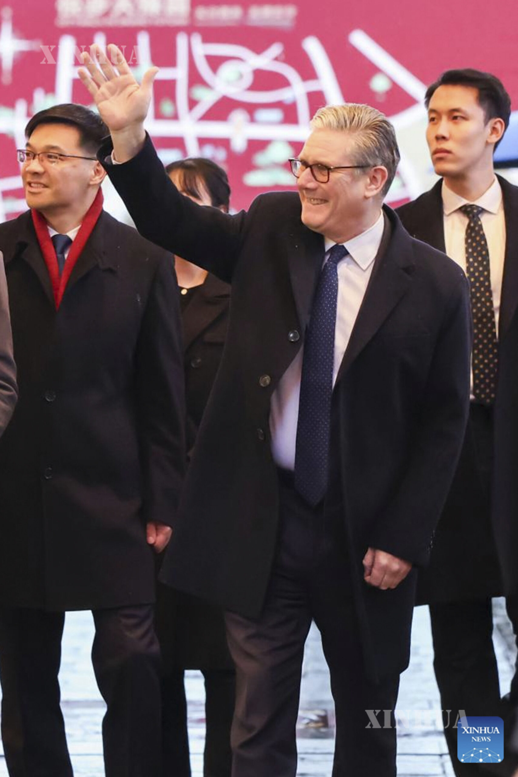 British Prime Minister Keir Starmer waves during a visit to Yuyuan Garden in Shanghai, east China, Jan. 30, 2026. (Xinhua/Wang Xiang)