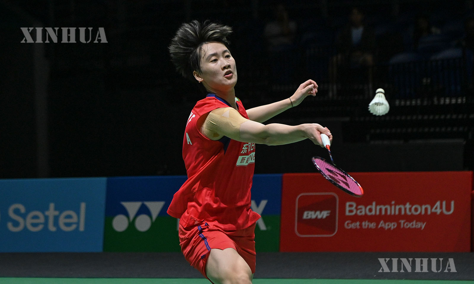 Chen Yufei of China hits a return during the women’s singles round of 16 match against Busanan Ongbamrungphan of Thailand at the Malaysia Open 2026 badminton tournament in Kuala Lumpur, Malaysia, Jan. 8, 2026. (Photo by Chong Voon Chung/Xinhua)