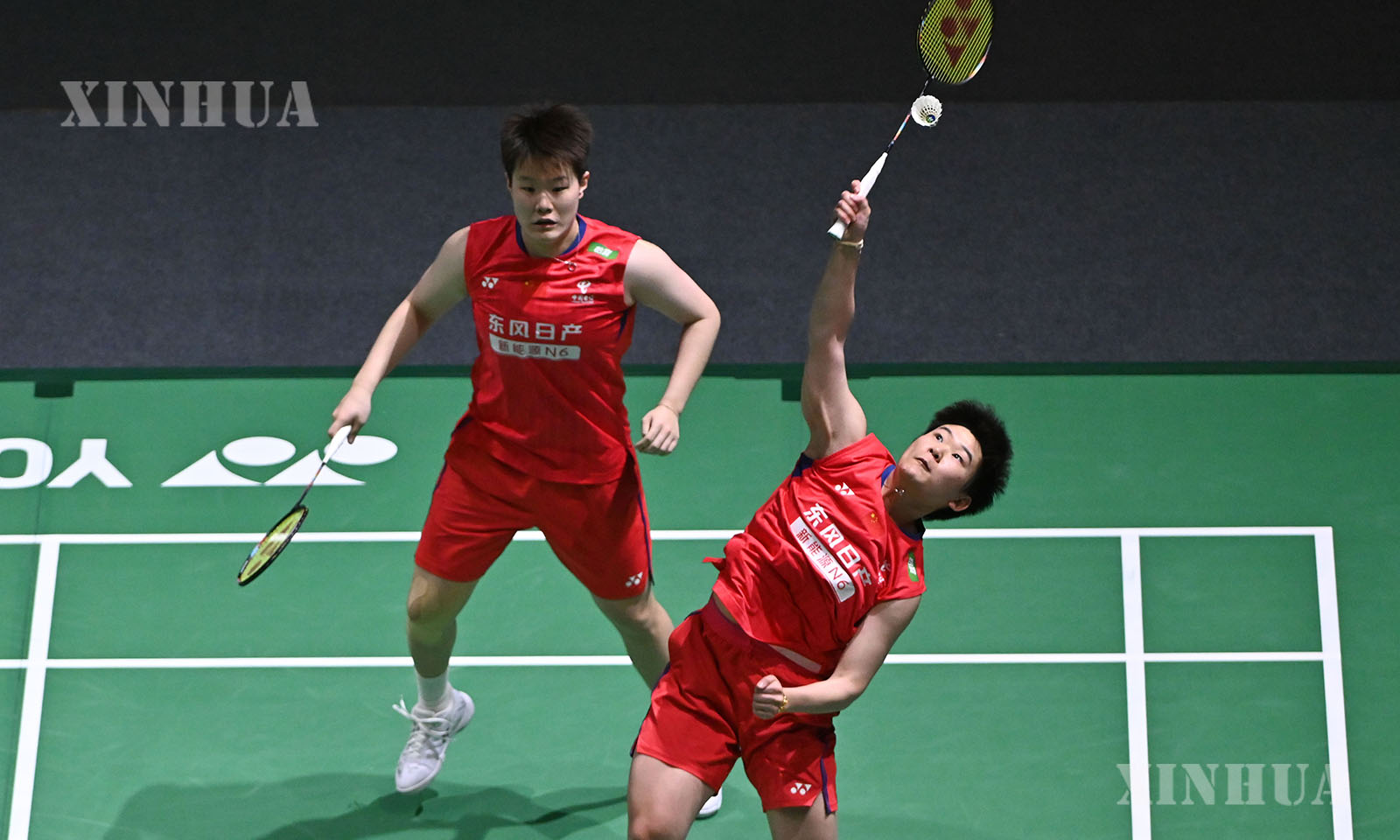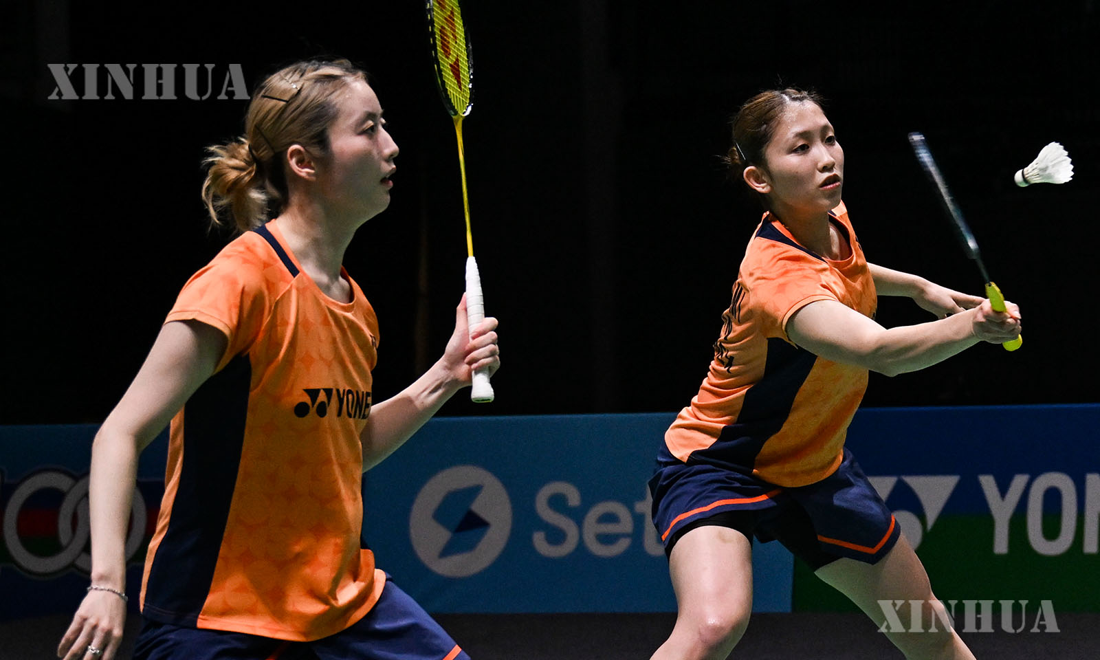 မလေးရှားနိုင်ငံ ကွာလာလမ်ပူမြို့တွင် ကျင်းပသည့် ၂၀၂၆ ခုနှစ် မလေးရှားအိုးပင်း ကြက်တောင်ရိုက်ပြိုင်ပွဲ အမျိုးသမီးနှစ်ယောက်တွဲ ၁၆ ဦးအဆင့် ပွဲစဉ်၌ ဂျပန်နိုင်ငံမှ Hirokami Rui နှင့် Hobara Sayaka တို့အတွဲနှင့် ယှဉ်ပြိုင်နေသည့် တရုတ်နိုင်ငံမှ လျိုစိန့်စူး နှင့် ထန်နင် (ယာ) တို့အတွဲကို ၂၀၂၆ ခုနှစ် ဇန်နဝါရီ ၈ ရက်က တွေ့ရစဉ် (ဆင်ဟွာ)