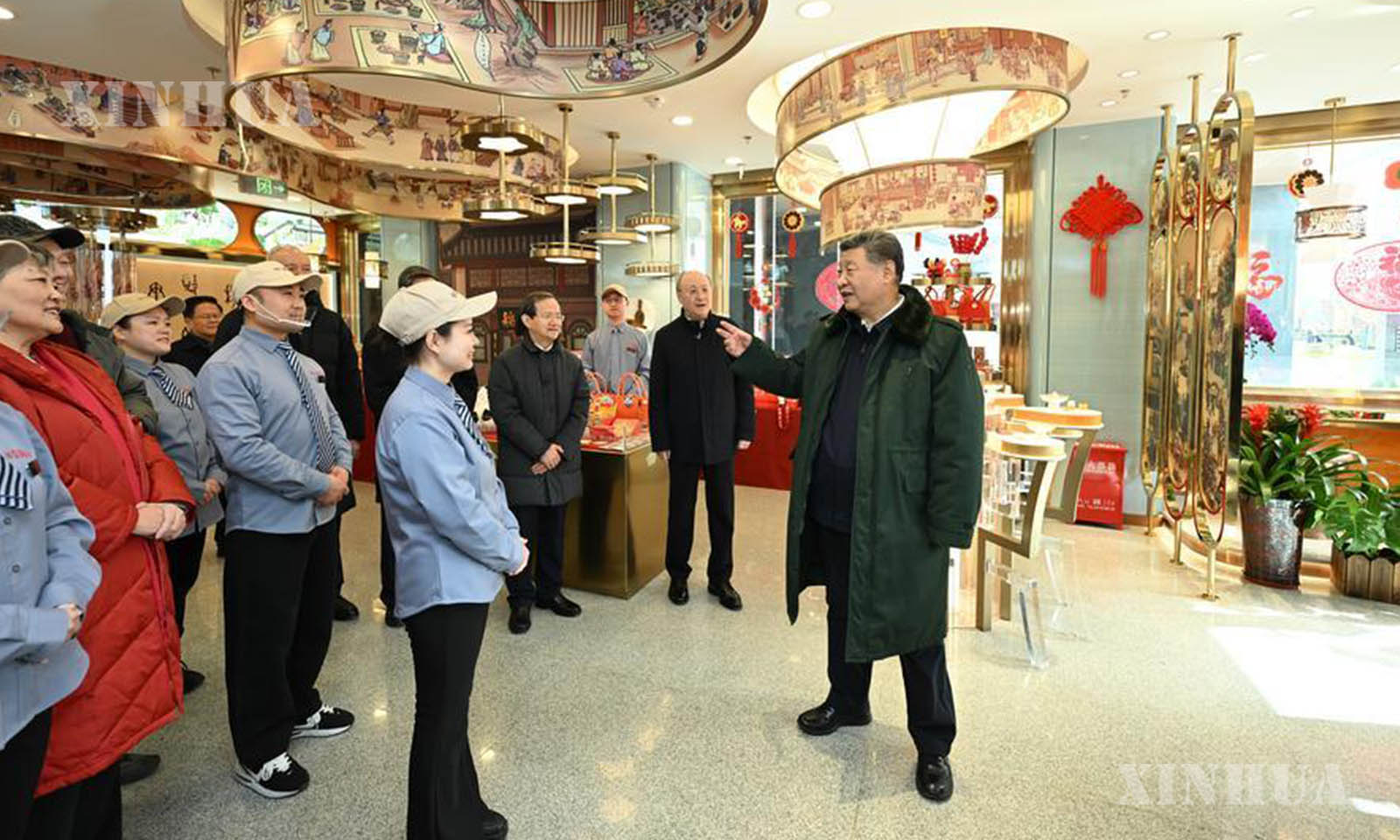 တရုတ်ကွန်မြူနစ်ပါတီ (CPC) ဗဟိုကော်မတီ အထွေထွေအတွင်းရေးမှူးချုပ်၊ ဗဟိုစစ်ကော်မရှင် ဥက္ကဋ္ဌလည်းဖြစ်သူ တရုတ်နိုင်ငံသမ္မတ ရှီကျင့်ဖိန်က တရုတ်နိုင်ငံ မြို့တော်ပေကျင်း၏ တုန်းချိန်ခရိုင်ရှိ လုန်ဖူစစ် ကုန်သွယ်ရေးဧရိယာ၌ ရိုးရာမုန့်အမှတ်တံဆိပ် တောက်ရှန်းချွန်း ၏ အရောင်းဆိုင်သို့ လာရောက်သည်ကို ၂၀၂၆ ခုနှစ် ဖေဖော်ဝါရီ ၁၀ ရက်က တွေ့ရစဉ် (ဆင်ဟွာ)