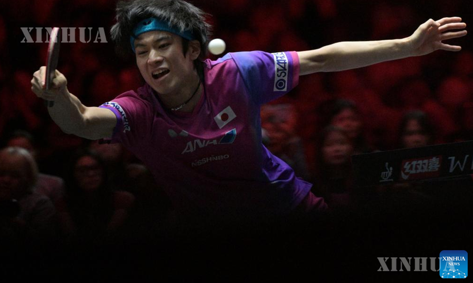 စင်ကာပူနိုင်ငံတွင် ကျင်းပသည့် ၂၀၂၆ ခုနှစ် Singapore Smash ကမ္ဘာ့စားပွဲတင်တင်းနစ်ပြိုင်ပွဲတွင် တရုတ်နိုင်ငံမှ ဝမ်ချူချင်းနှင့် ဂျပန်နိုင်ငံမှ တိုဂါမီ ရွှန်းဆုကီတို့၏ အမျိုးသားတစ်ဦးချင်း ၃၂ ဦးအဆင့် ပွဲစဉ်အတွင်း ဘောလုံးအား ပြန်ရိုက်နေသည့် ဂျပန်နိုင်ငံမှ တိုဂါမီ ရွှန်းဆုကီကို ၂၀၂၆ ခုနှစ် ဖေဖော်ဝါရီ ၂၄ ရက်က တွေ့ရစဉ် (ဆင်ဟွာ)