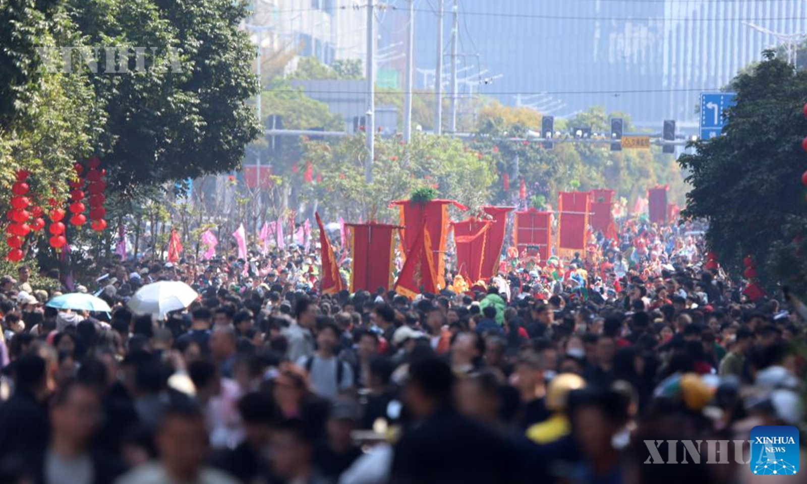 People enjoy performances during a Yingge dance carnival event celebrating the Spring Festival in Chaoyang District of Shantou, south China’s Guangdong Province on Feb. 21, 2026. (Photo by Yao Jun/Xinhua)